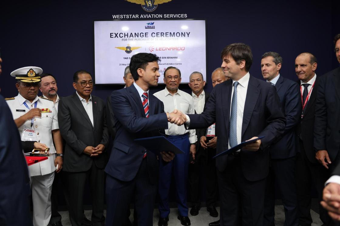 Leonardo e Weststar, compagnia aerea charter che offre una vasta gamma di servizi in elicottero, p tra cui servizi di aviazione generale, enti governativi e servizi militari, trasporto offshore ed evacuazioni mediche, danno il via a un importante programma governativo di espansione e modernizzazione degli elicotteri in Malesia con un fabbisogno totale di 28 elicotteri. In occasione del Langkawi International Maritime and Aerospace Exhibition - LIMA, Leonardo e il partner di lunga data Weststar Aviation Services (Weststar) della Malesia hanno celebrato oggi la partenza del più grande programma di espansione e modernizzazione della flotta di elicotteri governativi mai realizzato da Leonardo nel Paese. Esso mira a soddisfare un'ampia gamma di requisiti nazionali in materia di difesa, sicurezza e supporto alle comunità. Nell'ambito di questo programma, Weststar prevede la consegna di un massimo di 28 elicotteri di vario tipo, tra ordini fermi e opzioni, la maggior parte dei quali tra il 2026 e il 2027. Weststar concederà in leasing gli elicotteri al Governo malese per 15 anni, con servizi di supporto e addestramento dedicati localizzati all'operatore. Il programma rappresenta una crescita significativa della presenza di Leonardo Helicopters presso diversi operatori militari, di sicurezza nazionale e di pubblica utilità in Malesia. Include diversi modelli per la Royal Malaysian Police e Bomba per missioni di pubblica sicurezza, utility, trasporto, antincendio, EMS/SAR e soccorso in caso di calamità. Tra i diversi modelli, il programma comprende anche elicotteri AW149 per la Royal Malaysian Air Force e il Royal Malaysian Army, per applicazioni di ricerca e soccorso e utility, segnando l'ingresso dell'elicottero militare multiruolo di ultima generazione in Malesia e accrescendo ulteriormente il successo di questo modello tra gli operatori della difesa sul mercato internazionale. Leonardo continua a rafforzare il suo ruolo nel mercato elicotteristico malese. La sua visione è quella di posizionare il Paese al centro della sua strategia di espansione e di diventare un leader regionale nel settore degli elicotteri a rotore e di accrescere le sue capacità nel settore aerospaziale. Forte di una presenza consolidata e di partnership con gli operatori malesi, Leonardo sta rafforzando il suo impegno con investimenti, localizzando più attività industriali e sviluppando opportunità di innovazione. Con un hub regionale per l'assistenza clienti e l'addestramento vicino a Kuala Lumpur, Leonardo è l'unica Accademia di Addestramento per elicotteri al di fuori dei mercati nazionali. Nel corso degli anni, Leonardo ha visto centinaia di elicotteri svolgere missioni di pubblica utilità, sicurezza nazionale, forze dell'ordine, ricerca e soccorso, servizi medici di emergenza, pattugliamento marittimo, ruoli navali militari, ricognizione armata, operazioni offshore e trasporto passeggeri. Oggi, Leonardo serve oltre 70 operatori in Malesia, che utilizzano oltre 240 elicotteri, accumulando oltre 40.000 ore di volo all'anno. Negli ultimi dieci anni, il numero di studenti formati localmente è più che raddoppiato, accumulando centinaia e diverse migliaia di ore di volo simulato all'anno. Questo rende la Malesia una delle basi operative più attive al mondo, a dimostrazione del ruolo strategico del Paese per lo sviluppo di professionisti altamente qualificati. Leonardo è ora pronta ad espandere le sue attività industriali localizzate in Malesia con nuove e all'avanguardia capacità di simulazione e addestramento, inclusi ulteriori simulatori di volo completi e trainer interattivi per le operazioni elicotteristiche. L'azienda prevede inoltre di potenziare o introdurre infrastrutture di manutenzione, riparazione e revisione (MRO) per la riparazione avanzata delle pale, la manutenzione dei sistemi elettronici e l'integrazione dei sistemi di missione, rafforzando il ruolo della Malesia come hub di supporto globale per Leonardo. "Siamo orgogliosi di unire le forze con il nostro consolidato partner Weststar per rispondere a questo importante requisito imposto dal governo malese, volto a fornire maggiori capacità aeronavali a beneficio della difesa e della sicurezza nazionale e delle comunità locali", ha dichiarato Gian Piero Cutillo, Amministratore Delegato di Leonardo Elicotteri. "Quest'ultima iniziativa si basa sulla solida presenza e sugli investimenti effettuati da Leonardo nel corso di molti anni nel Paese, dimostrando di poter essere un partner affidabile per obiettivi chiave di sicurezza e salvaguardia delle vite umane, nonché per l'economia locale e le opportunità di lavoro. Vicinanza, innovazione e competenze professionali sono fattori chiave del successo. Pertanto, la Malesia continua a essere un hub fondamentale per noi al servizio del Paese e dell'intera regione, e ci impegniamo a rimanere al fianco delle sue autorità per garantire che la nostra tecnologia e i nostri servizi funzionino al meglio".