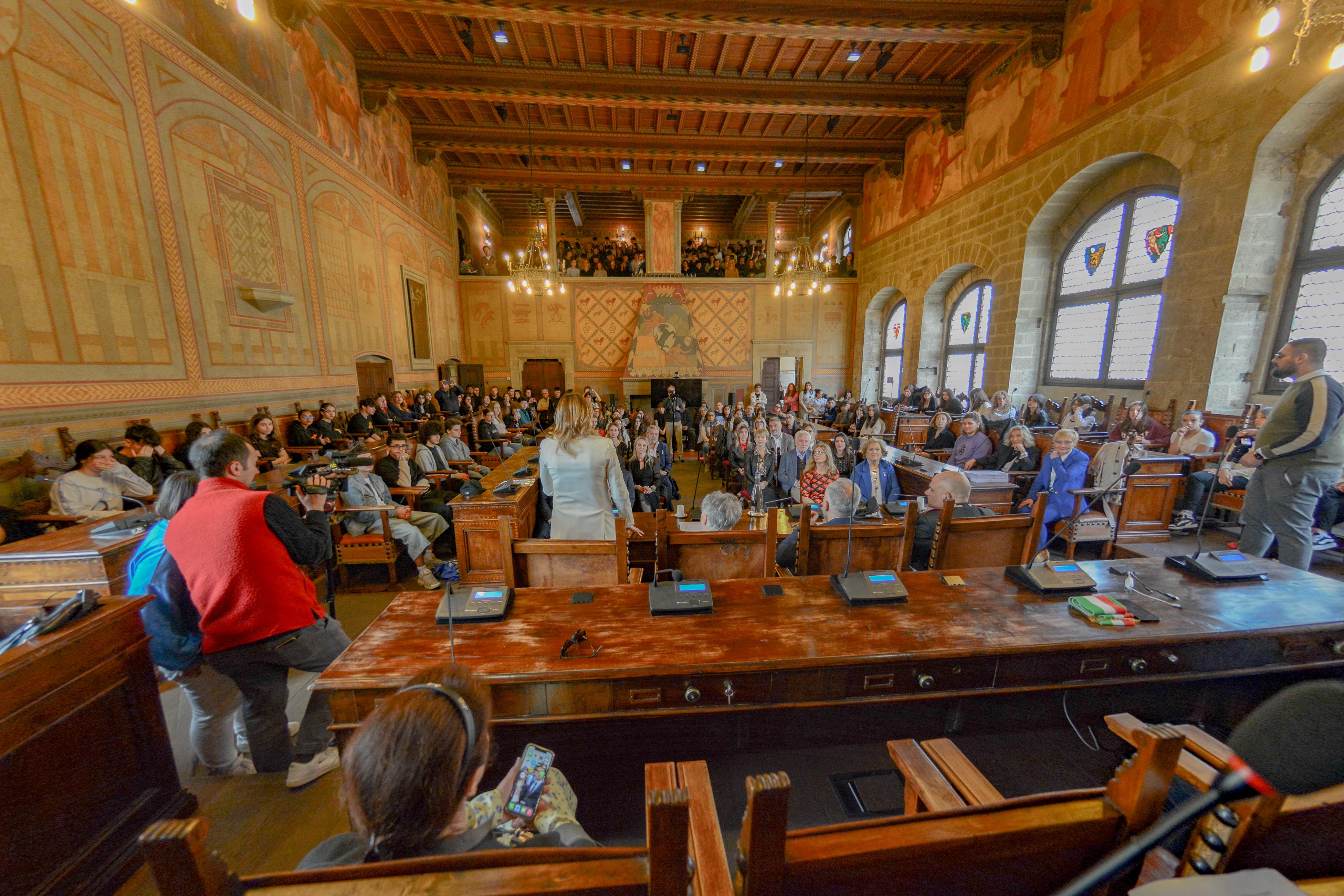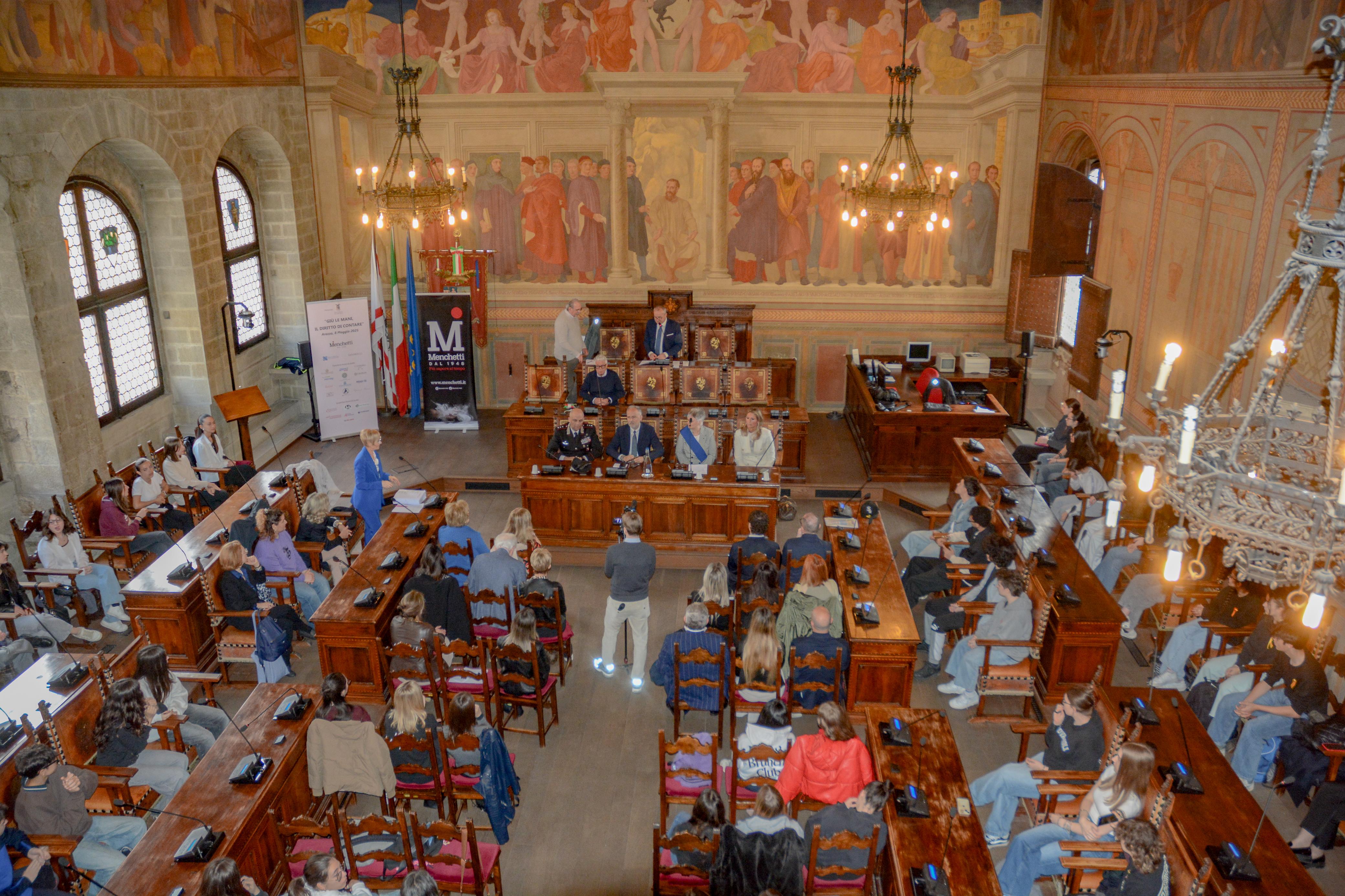 Nella Sala dei Grandi della Provincia di Arezzo stamani la cerimonia di consegna delle borse di studio “Giù le mani . Il diritto di contare”: oltre 2.000 studenti coinvolti.