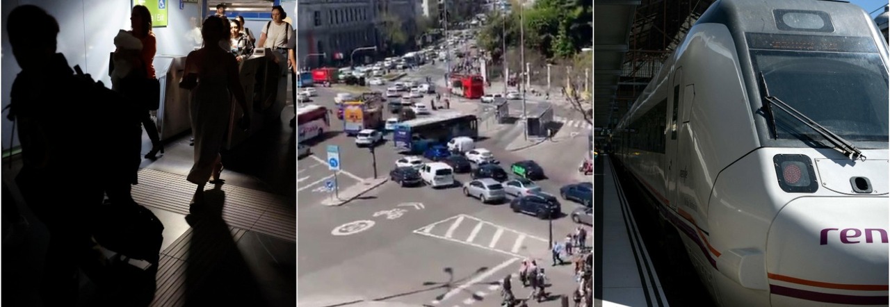 I cittadini spagnoli e portoghesi hanno segnalato lo stop alla corrente elettrica poco dopo le 12. L'interruzione ha coinvolto le comunicazioni, gli aeroporti e le reti di trasporto ad alta velocità in entrambe le nazioni. Colpiti anche i semafori e i centri commerciali. A Madrid la metropolitana è stata interrotta, anche la rete Cercanías è fuori servizio.