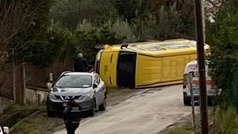 Momenti di paura, stamani, a Cervaro, nel Frusinate: uno scuolabus che trasportava sette bambini delle scuole Elementari si è ribaltato su un fianco mentre percorreva una curva ad alta velocità, dopo una discesa.