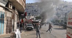 Momenti di grande apprensione nel villaggio palestinese di Haris, nei pressi di Nablus, dove i residenti hanno ispezionato i resti di un imponente missile conficcatosi nel terreno roccioso.