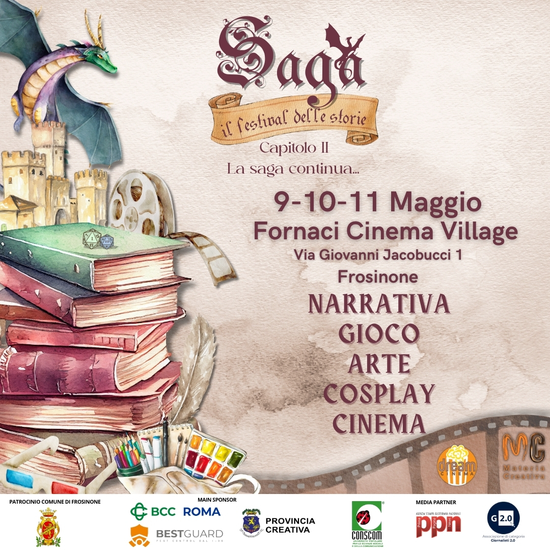 Dopo il successo della prima edizione, SAGA - Il Festival delle Storie torna grazie all’Associazione Materia Creativa con il suo “Capitolo II” per trasformare Frosinone nel punto di riferimento della cultura pop.