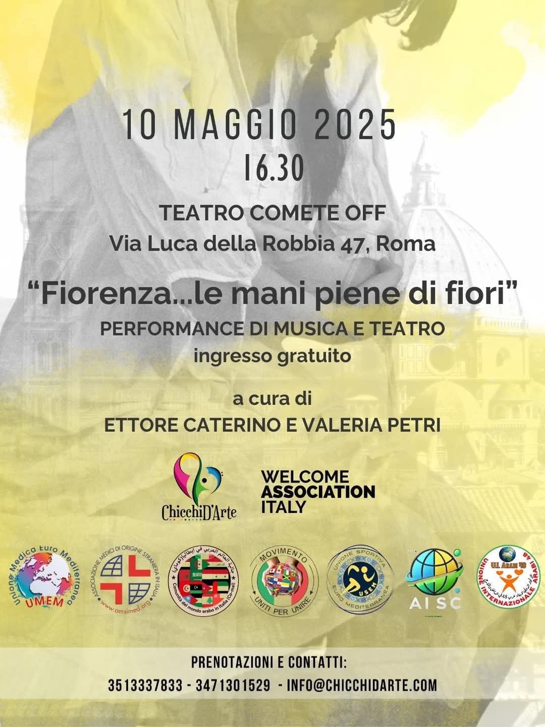 “Siamo orgogliosi di sostenere l’evento ‘Fiorenza… le mani piene di fiori’ non come fatto isolato, ma come primo frutto concreto del nuovo protocollo firmato. Questo progetto, che intreccia arte, memoria e accoglienza, incarna i valori che portiamo avanti ogni giorno: inclusione, cultura, partecipazione attiva e sensibilizzazione. L’arte è uno strumento potente di rinascita e unione, e in questo momento storico rappresenta una leva fondamentale per la promozione dei diritti e della coesione sociale. Il contributo del Prof. Aodi, che ringrazio per la sua instancabile dedizione, è un riferimento imprescindibile per tutte le realtà associative e culturali coinvolte. Ringraziamo anche la compagnia teatrale e tutte le realtà che stanno sostenendo questo nuovo percorso di cooperazione interculturale.”