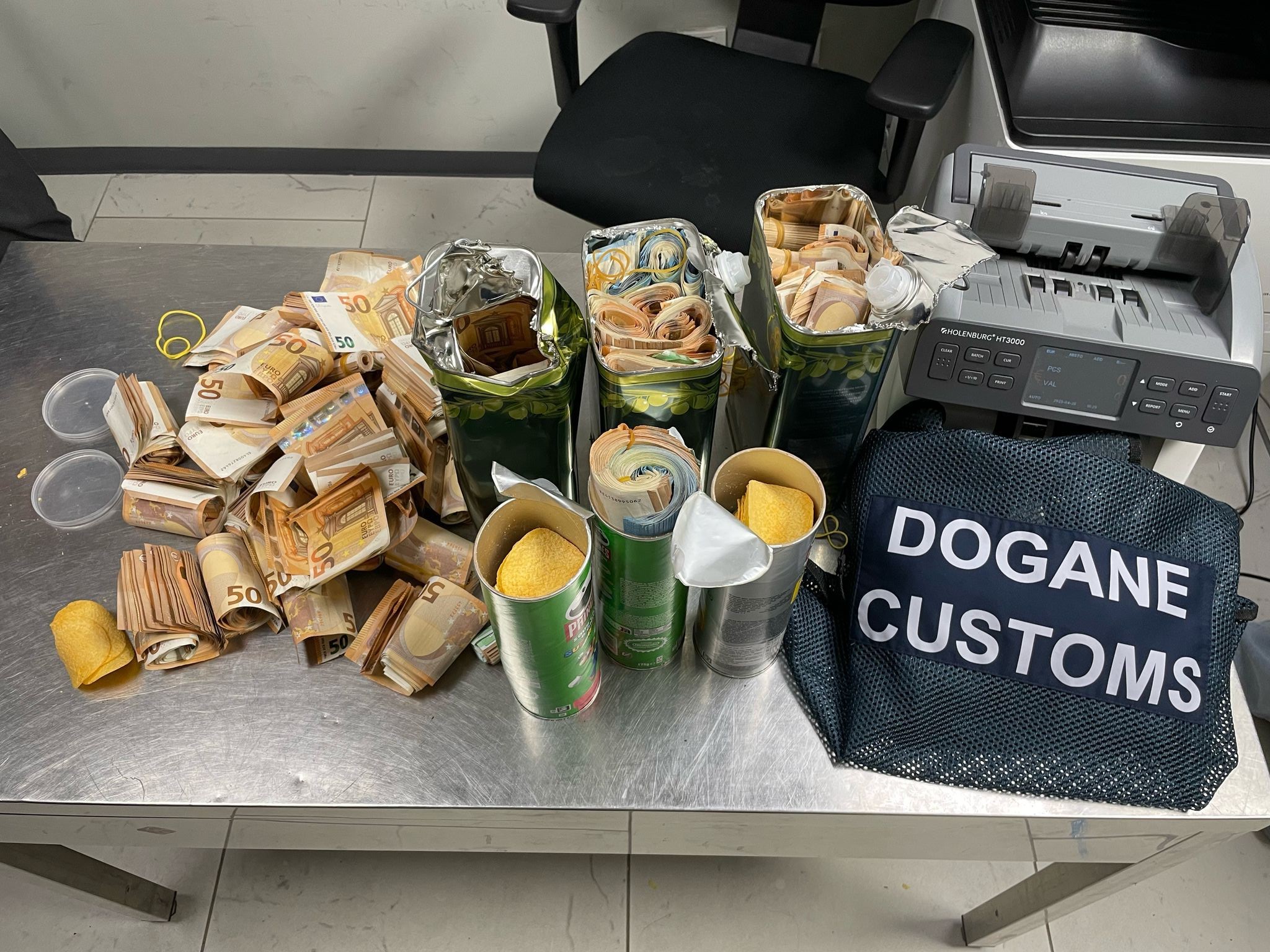 Quasi 200mila euro, nascosti in confezioni di patatine e contenitori d'olio, sono stati sequestrati stamani all'Aeroporto "Leonardo Da Vinci" di Fiumicino (Roma), nel corso di un'operazione congiunta tra i funzionari dell'Ufficio delle Dogane di Roma 2 dell'Agenzia delle Dogane e dei Monopoli e i finanzieri del Gruppo locale.