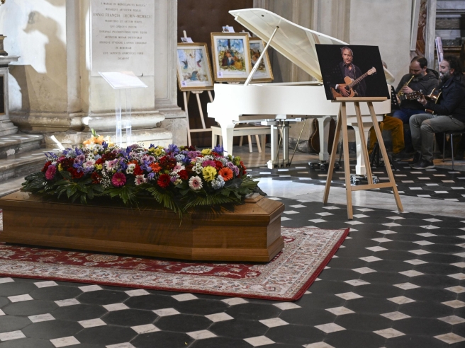 Un ultimo atto tra poesia, sorrisi e note universali quello celebrato alla Chiesa degli Artisti di Roma per David Riondino, scomparso a 73 anni.