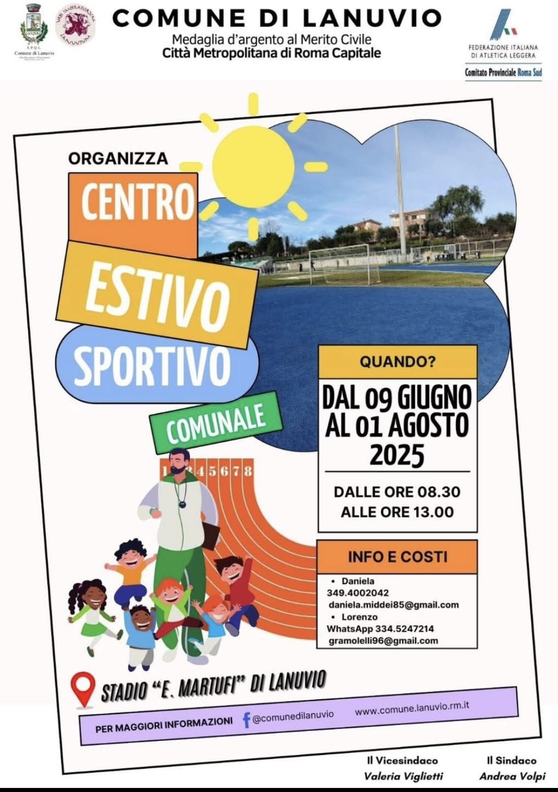 Torna il centro estivo sportivo, organizzato dall’assessorato allo Sport in collaborazione con il Comitato Provinciale Roma Sud della Fidal e la Consulta dello Sport di Lanuvio.