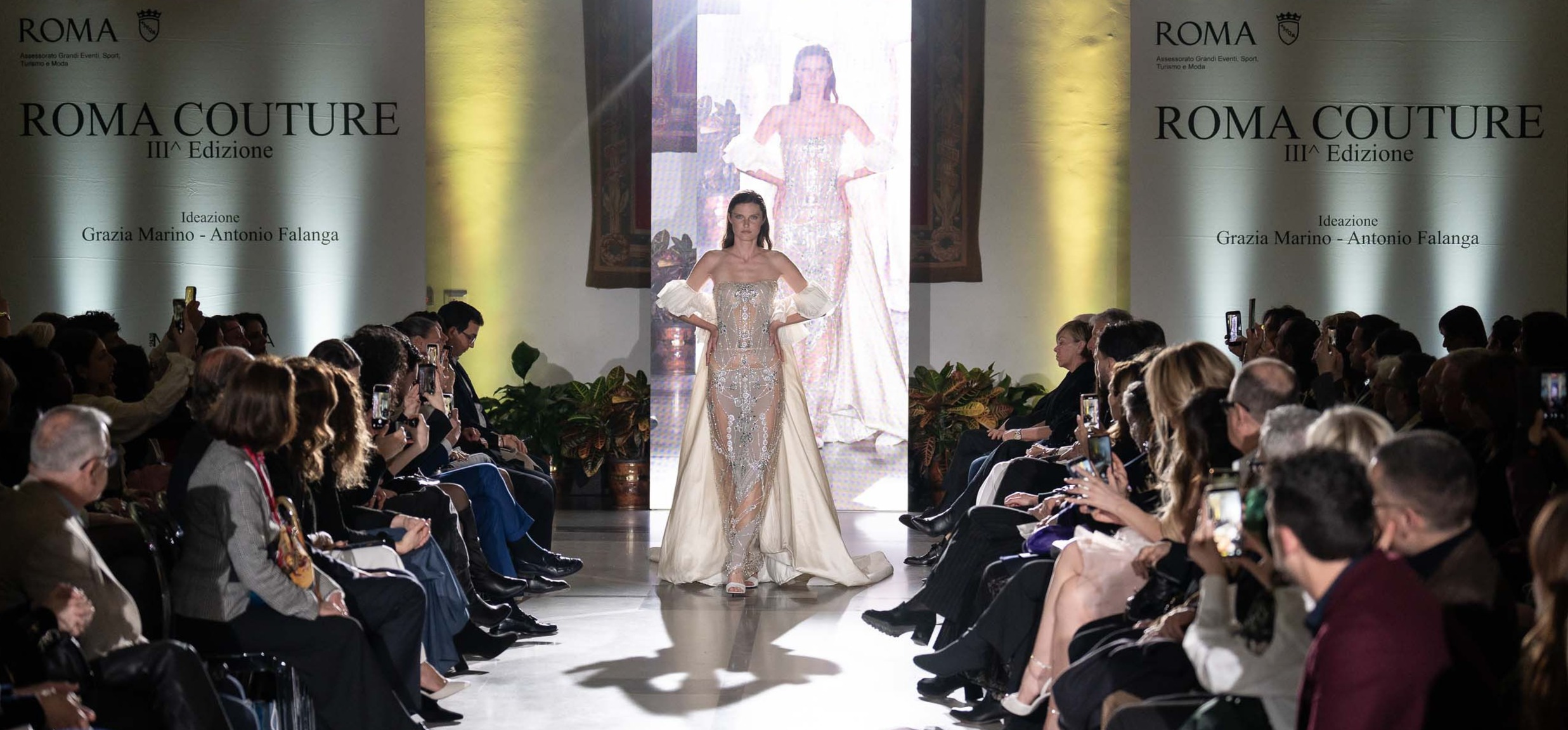 Nella Sala della Protomoteca del Campidoglio, a Roma, si è svolta la terza edizione di Roma Couture, manifestazione dedicata alla valorizzazione e alla promozione dell’Alta Moda italiana, ideata da Grazia Marino e Antonio Falanga, prodotta da Spazio Margutta, con il patrocinio dell’Assessorato ai Grandi Eventi, Sport, Turismo e Moda del Comune di Roma.