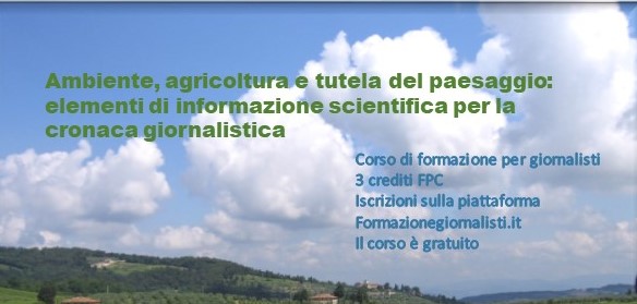 Per i giornalisti interessati a comprendere meglio i temi legati all’ambiente, all’agricoltura e alla tutela del paesaggio, si apre una preziosa opportunità formativa: un corso gratuito, in presenza, che permetterà di approfondire questi argomenti con esperti del settore e di ottenere 3 crediti formativi professionali (CFPC).