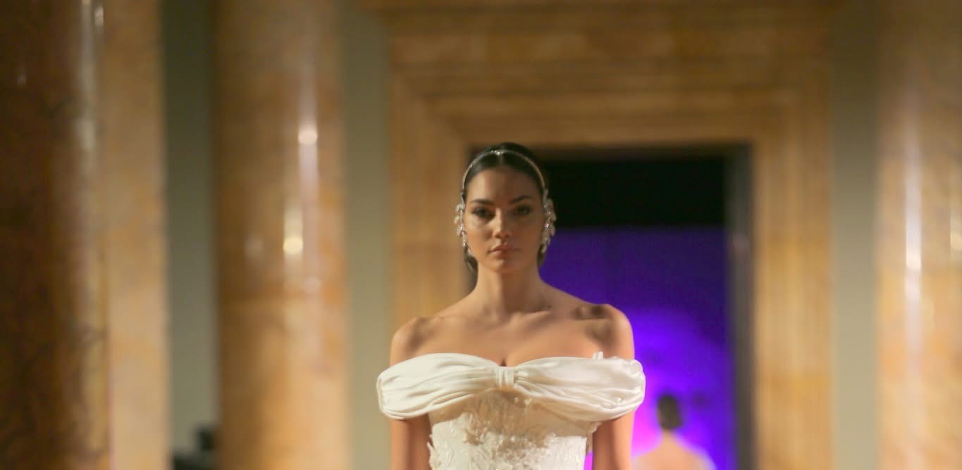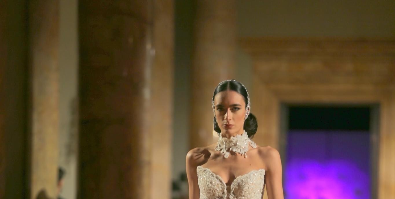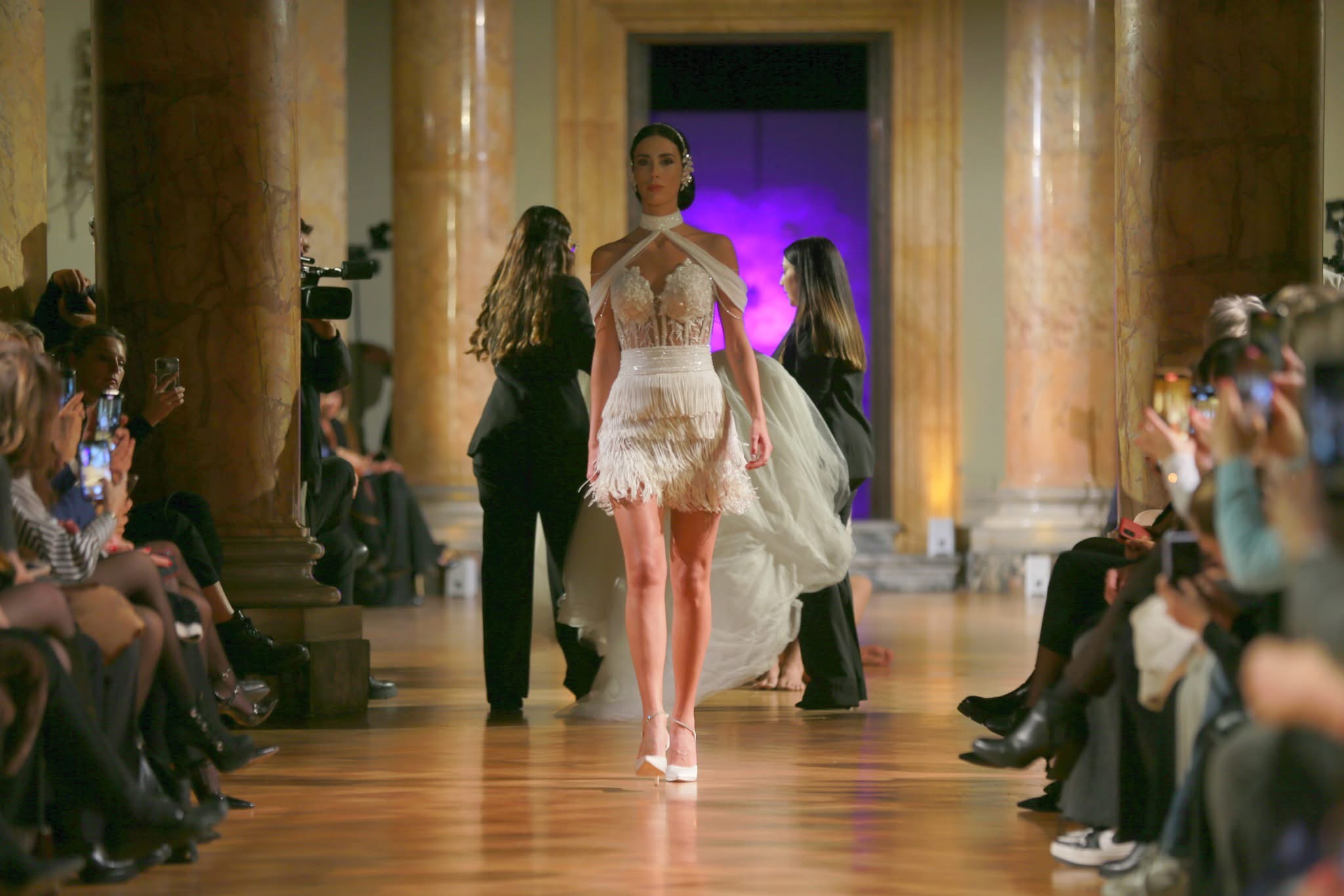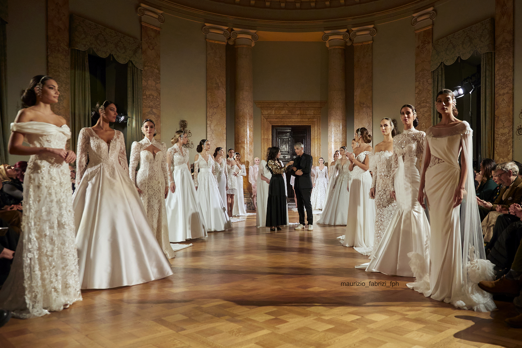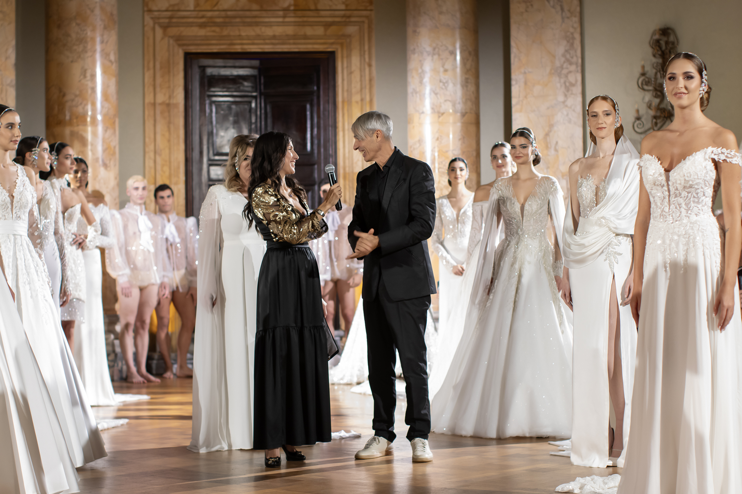 La modella, dopo essere stata accompagnata da quattro ballerini all’interno di una vasca bianca collocata al centro della galleria in cui, seguendo la sfilata, sognava il suo abito da sposa, ad un certo punto, come in un vero e proprio sogno, è stata vestita con un bellissimo abito da sposa da due assistenti dello stilista, trasformandola in una vera principessa, sfilando poi anche lei nella meravigliosa Galleria del Cardinale Colonna insieme alle altre modelle.