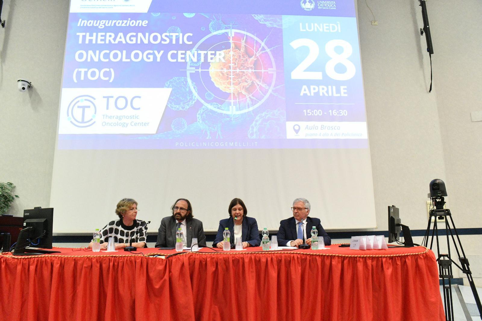 La Teragnostica è un approccio medico che integra diagnosi e terapia, combinando l'uso di radiofarmaci sia per individuare una patologia, che per trattarla. L’impiego di questa nuova classe di trattamenti richiede diverse expertise e strutture dedicate. Per questo la Fondazione Policlinico Gemelli ha deciso di creare il Theragnostic Oncology Center (TOC), per offrire ai pazienti le terapie e la diagnostica più innovativa di questo settore, che gli esperti assicurano rivoluzionerà nel prossimo futuro l’oncologia e, più avanti, le malattie infiammatorie croniche. Le attività del centro prevedono incontri clinici per la definizione dei pazienti candidabili a tale approccio terapeutico (‘Thera-board’) e altri (‘TOC Research Meetings’) dedicati alla discussione dei trial clinici (no profit, profit e bandi italiani e internazionali). Saranno inoltre discussi e identificati dei percorsi diagnostico-assistenziali dei pazienti, trasversali al dipartimento, a tutte le sue unità operative (radiologia, radioterapia oncologica, medicina nucleare, fisica medica) e ai relativi servizi (Servizi di Radioterapia, diretti dalla professoressa Maria Antonietta Gambacorta; Servizi di PET/TAC e terapie ambulatoriali della Medicina Nucleare, diretti dalla prof.ssa Maria Lucia Calcagni; Fisica Medica, diretta dal professor Marco De Spirito). Si tratta di un’iniziativa promossa in stretta collaborazione con la Direzione Scientifica (direttore scientifico f.f. il professor Antonio Gasbarrini) e con il Comprehensive Cancer Center (diretto dal professor Giampaolo Tortora), visto che le applicazioni della Teragnostica sono al momento prevalentemente di tipo oncologico.