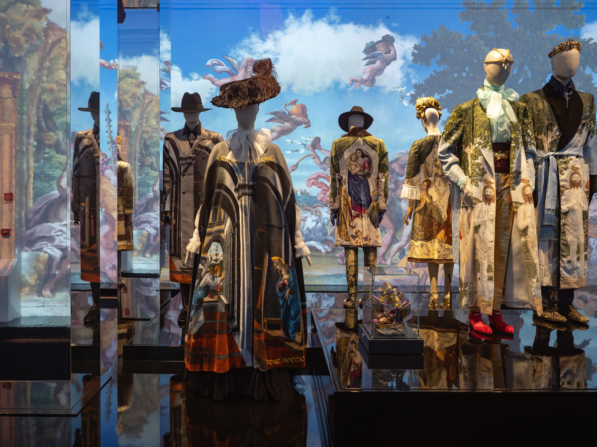 Il percorso espositivo si sviluppa in un susseguirsi di grandi sale immersive su una superficie di circa 1.500 mq, esplorando il pensiero creativo e non convenzionale del brand nel mondo del lusso – elegante, sensuale e unico, ma anche ironico, irriverente e rivoluzionario. Le creazioni sono raccontate attraverso una serie di temi che evidenziano le molteplici influenze culturali italiane alle radici di Dolce&Gabbana: dall’arte all’architettura, dall’artigianato d’eccellenza al folklore, dalla musica all’Opera, il Balletto, il teatro e, naturalmente, le suggestioni della “dolce vita”.