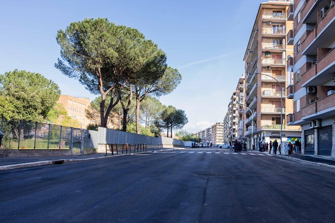 Riapre via Sestio Menas, nel Municipio V al confine con il VII, dopo gli interventi di indagine e messa in sicurezza della voragine che si è aperta a marzo 2024.