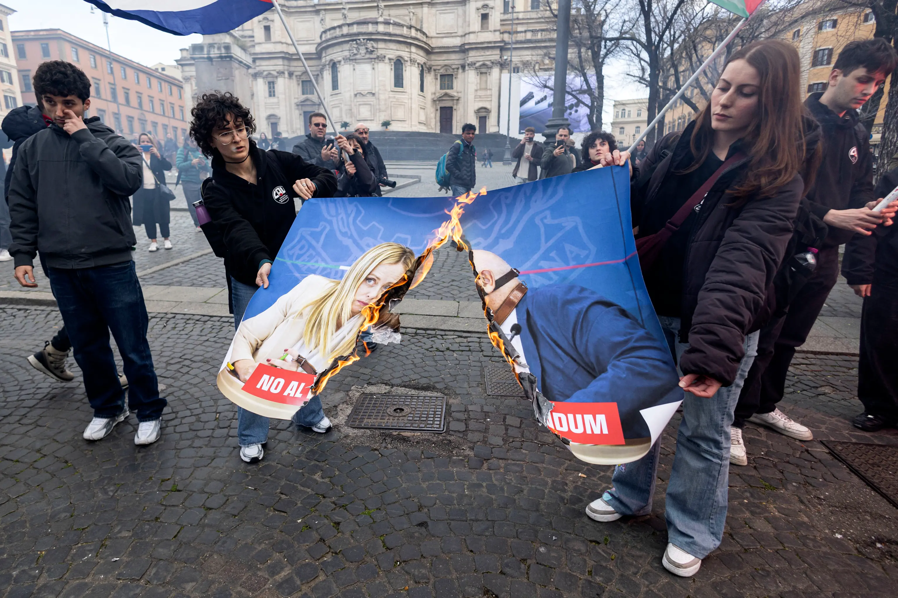 Momenti di forte tensione nella Capitale durante il corteo organizzato per contestare le politiche dell'esecutivo e i prossimi appuntamenti elettorali. Sotto lo slogan "no al referendum, no alla guerra, no al governo liberticida", la manifestazione è sfociata in un atto di aperta ostilità simbolica quando un gruppo di partecipanti ha dato alle fiamme, utilizzando dei fumogeni, un grande cartellone raffigurante la Presidente del Consiglio, Giorgia Meloni, e il Ministro della Giustizia, Carlo Nordio.