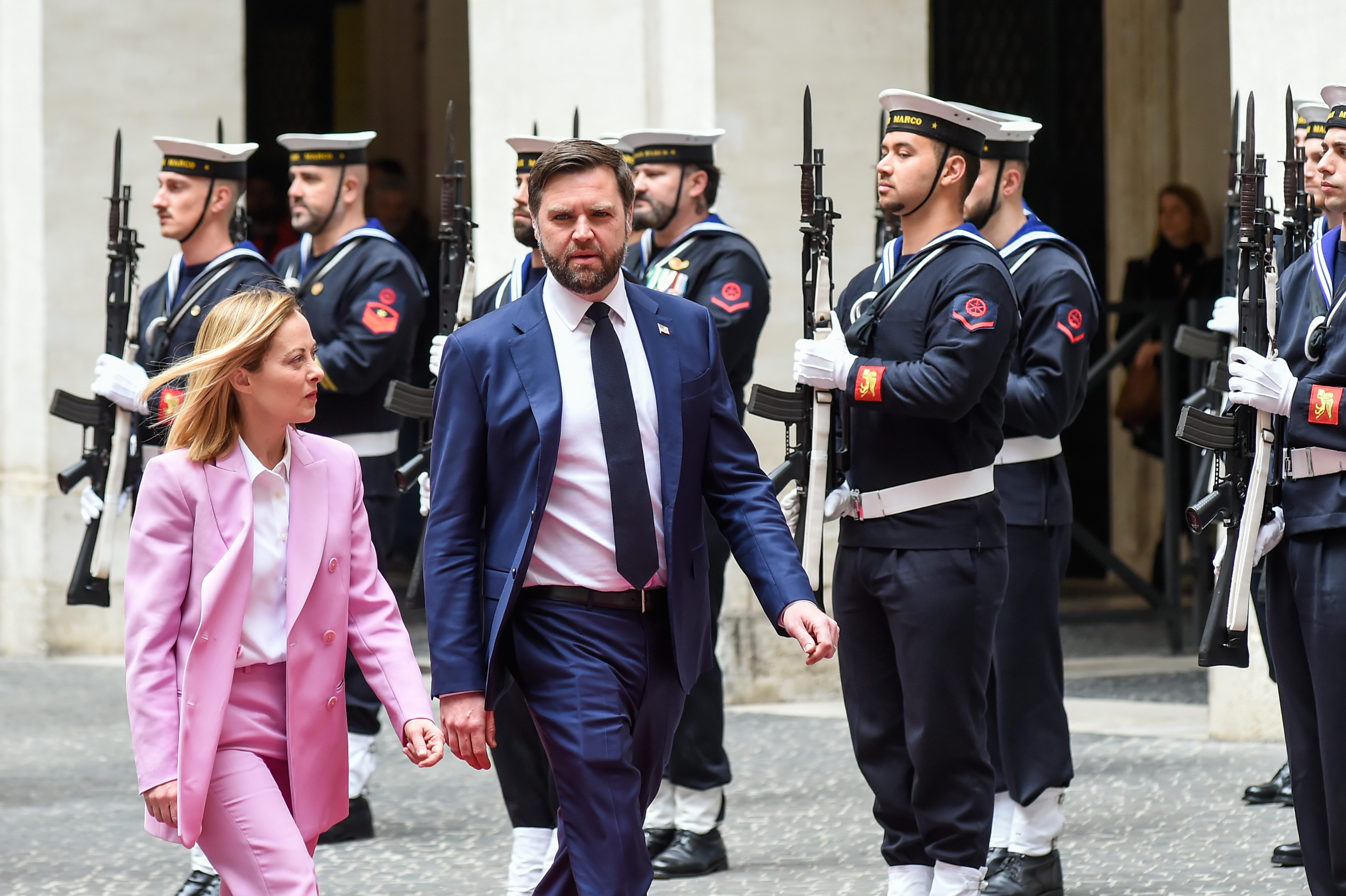 "Grazie, è un piacere rivederla, apprezzo l'amicizia dei nostri due Paesi e il presidente manda i migliori auguri a lei e agli italiani. Mentre giravo con la mia famiglia per Roma ho visto che è stata costruita da persone che amano gli esseri umani e Dio. Credo che ne trarremo inspirazione, sono grato a lei, ai romani e agli italiani", ha detto Vance, incontrando la premier.