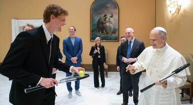 Il Santo Padre ha ricevuto in regalo da Sinner una racchetta da tennis. Il campione aveva anche la sua racchetta con sé e ha chiesto al Papa: "Vuole giocare?". Il Santo Padre, che gli ha mostrato la sala con lampade e altri mobili, ha replicato ridendo: "Lasciamo stare, qui meglio di no".