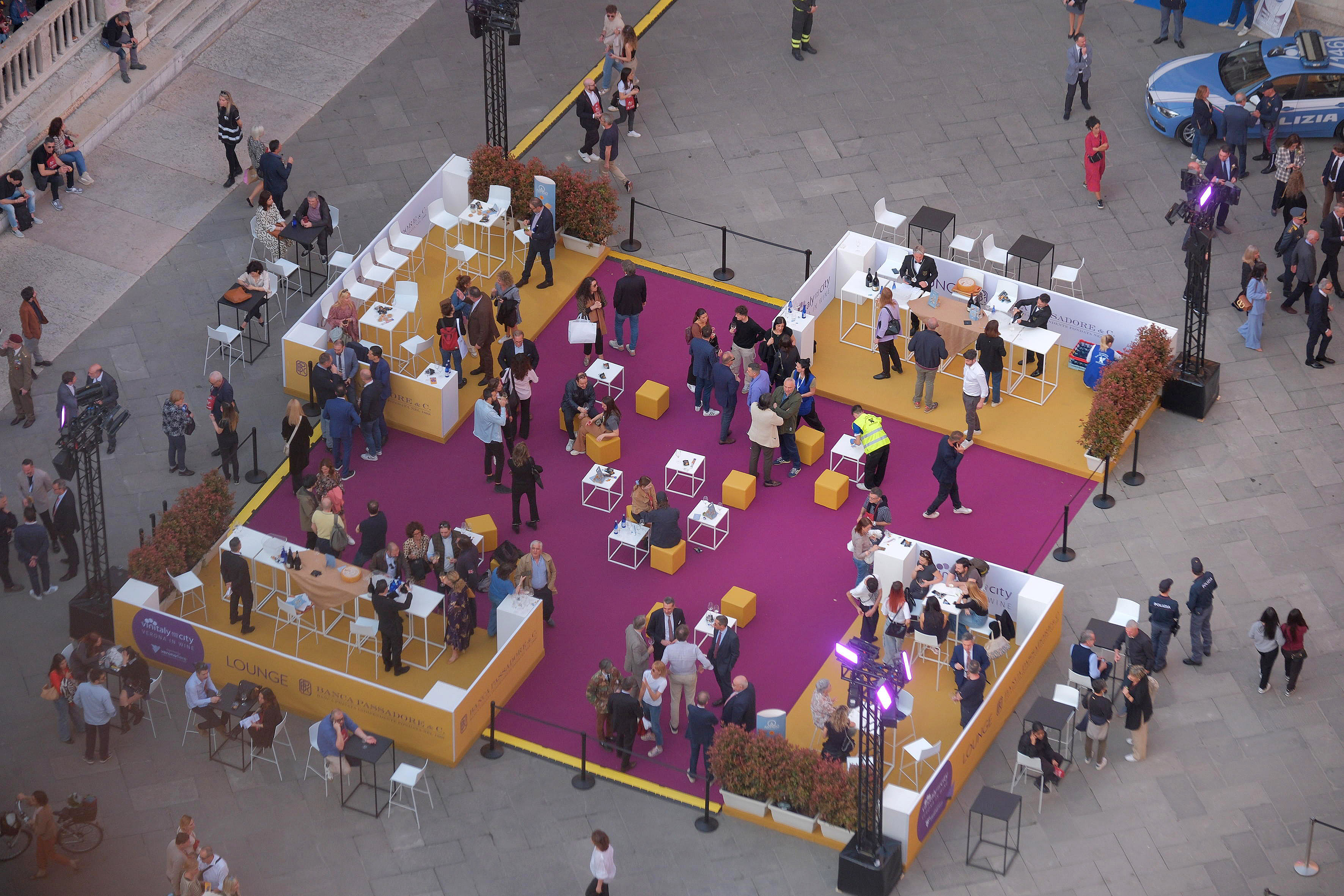 Completa il tour – non solo enogastronomico ma anche culturale – la Lounge Affreschi, che ospiterà l’Assessorato dei Beni Culturali e Identità Siciliane per la promozione di Agrigento Capitale della Cultura 2025 e dei parchi archeologici siciliani. Svetta infine sulla Torre dei Lamberti il Consorzio Tutela Lugana Doc.