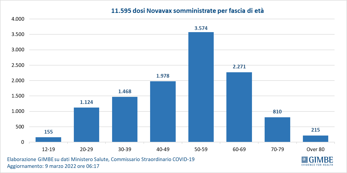 Vaccini: Novavax. Dal 28 febbraio sono state somministrate 11.595 dosi vaccino Novavax, di cui il 59,2% in persone over 50, la maggior parte delle quali in età lavorativa. “La speranza – commenta Cartabellotta – che questo vaccino, basato su una tecnologia più tradizionale rispetto agli innovativi vaccini a mRNA, potesse convincere gli indecisi è stata disattesa. Purtroppo, sul fronte dei nuovi vaccinati nessun boom”.