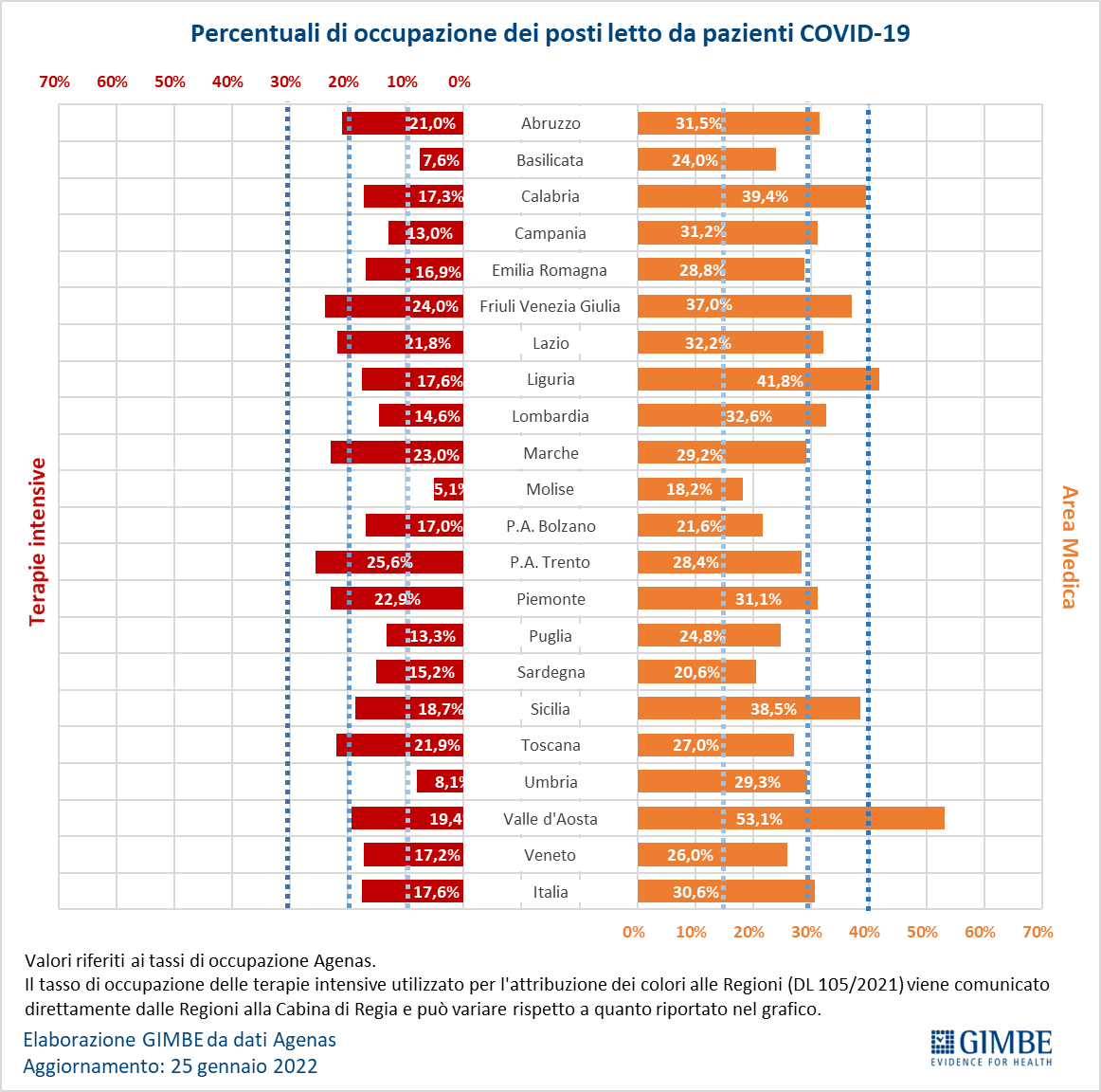 Al 25 gennaio, il tasso di occupazione nazionale da parte di pazienti COVID è del 30,6% in area medica e del 17,6% in area critica.