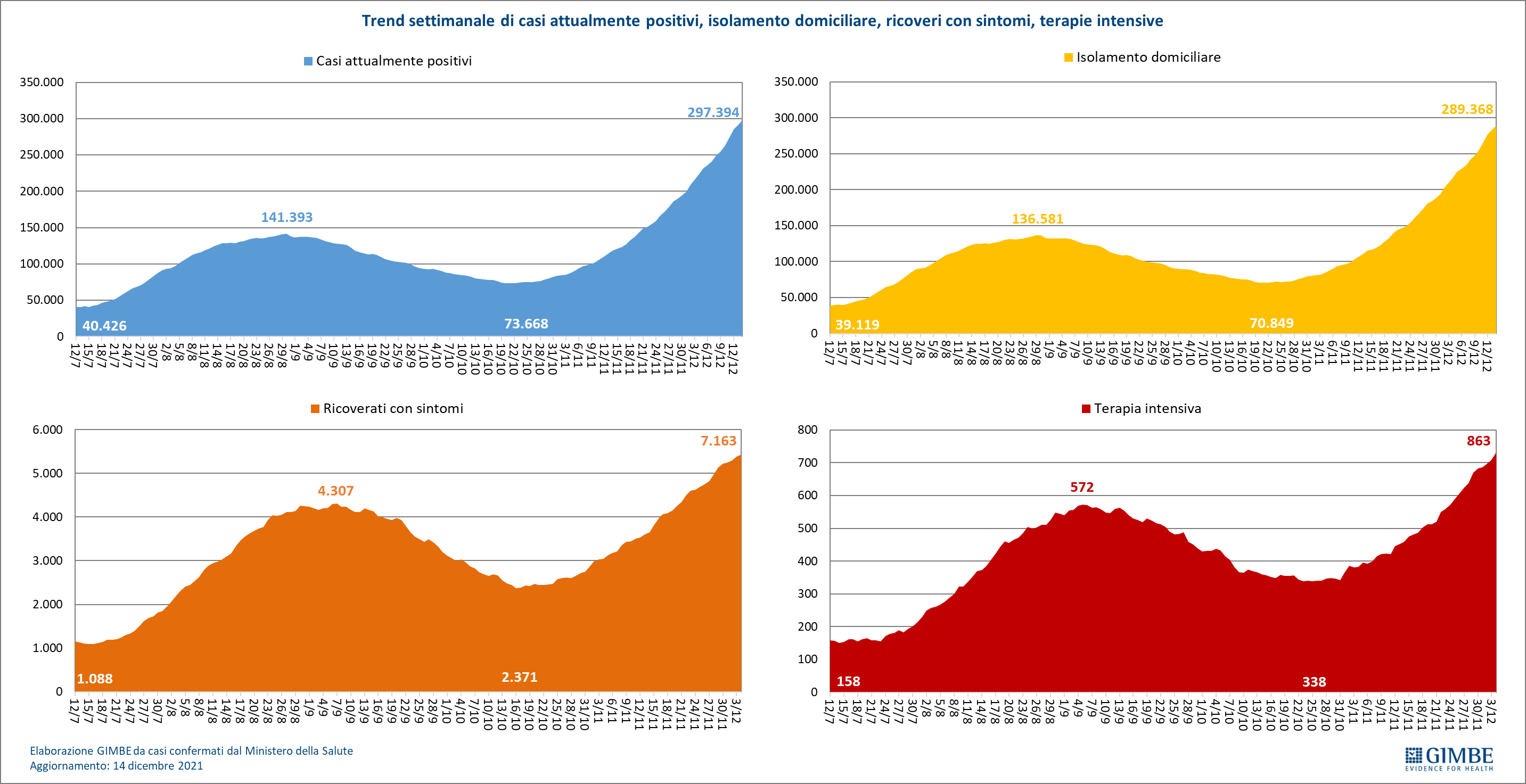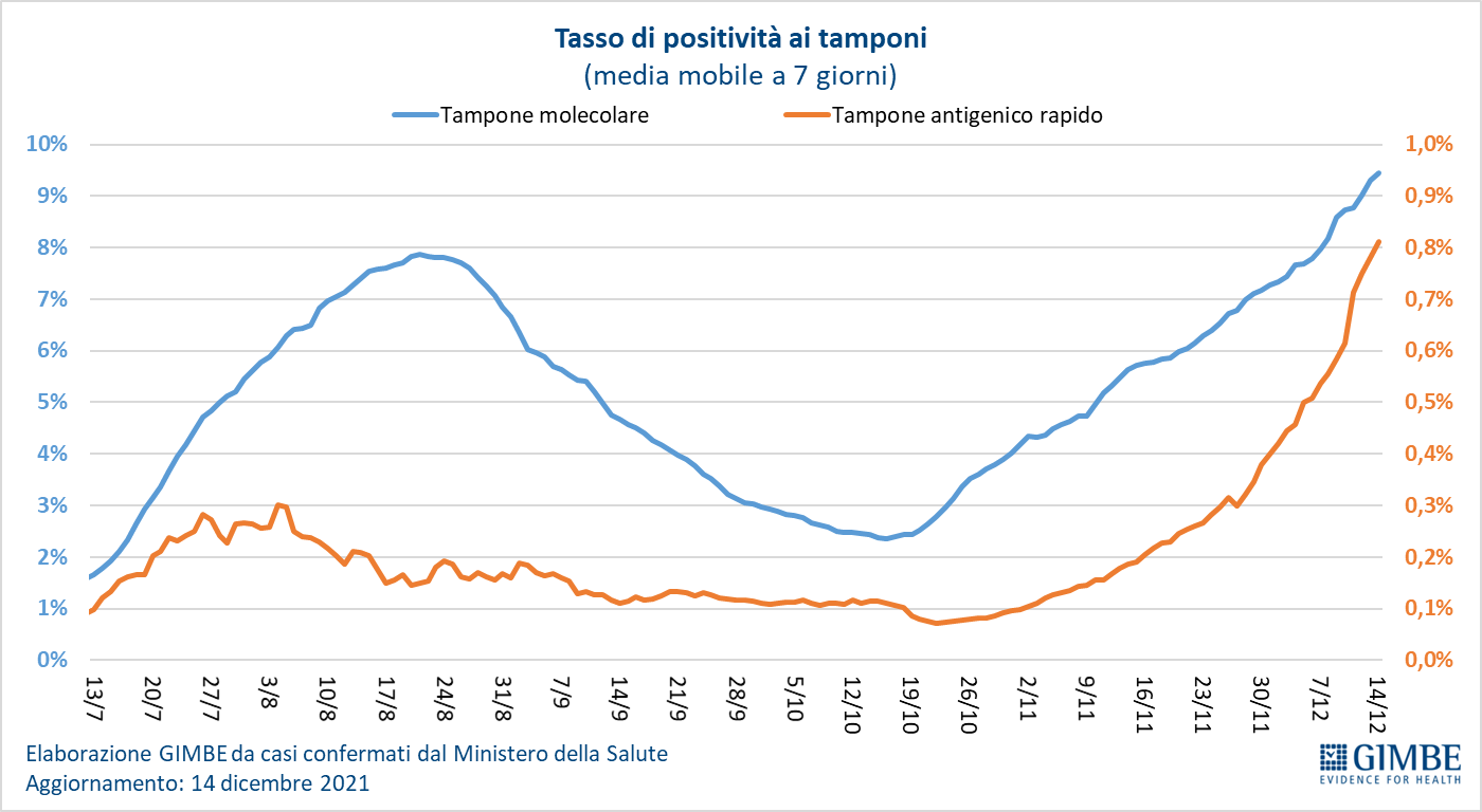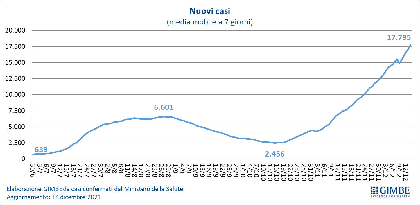 "Da due mesi – dichiara Nino Cartabellotta, Presidente della Fondazione Gimbe – continuano ad aumentare i nuovi casi con una media mobile a 7 giorni che passa da 2.456 il 15 ottobre a 17.795 il 14 dicembre" (figura 4).