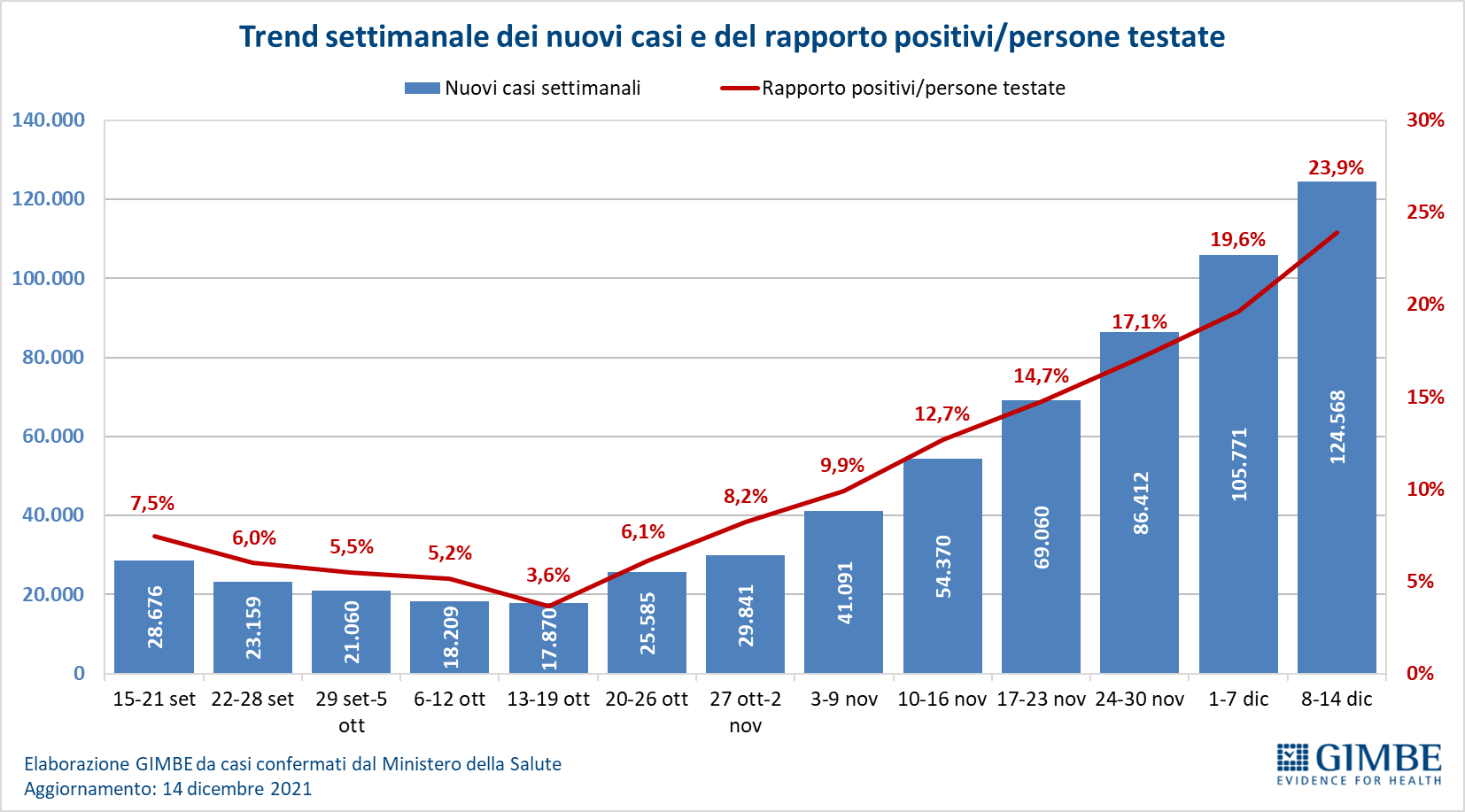 Nuovi casi: 124.568 (+17,8%)