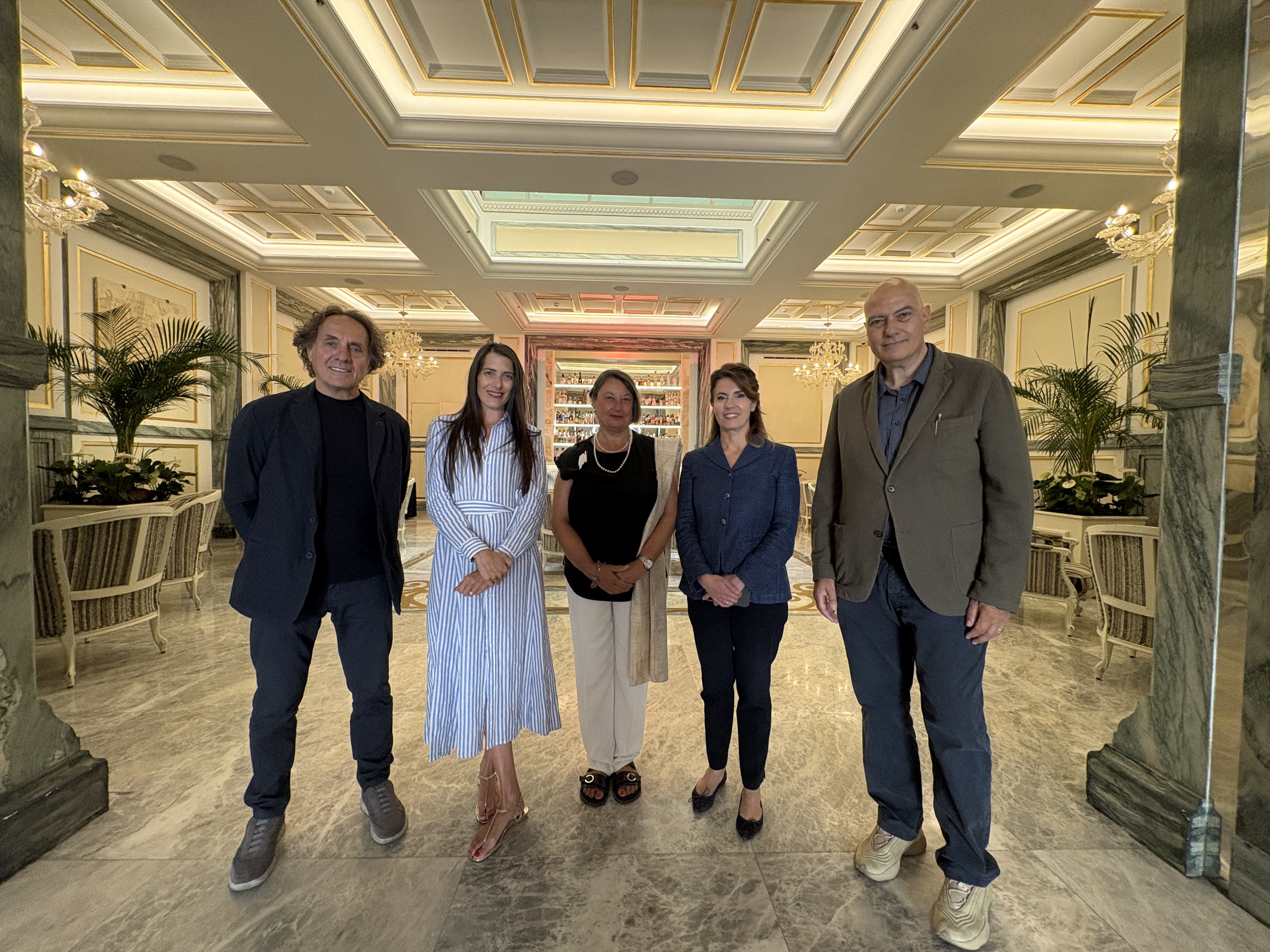 Nello specifico, gli artisti, tutti storici docenti dell’Accademia di Belle Arti di Roma, realizzeranno sei opere pittoriche ciascuno, appositamente pensate per le grandi boiseries della lobby dell’Aleph - ospitato in un palazzo storico, un tempo sede della più prestigiosa banca italiana, la Cassa di Risparmio – caratterizzata dalla brillantezza del marmo verde cipollino.