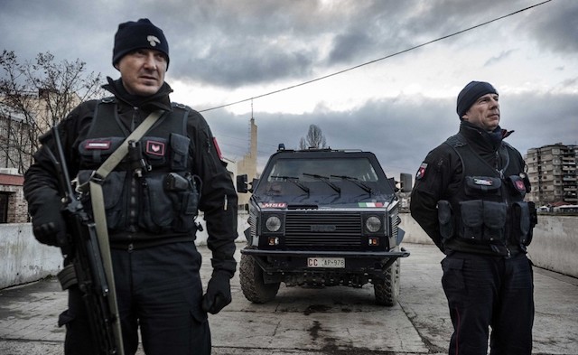 Anche un contingente di Carabinieri italiani sarebbe schierato nei pressi del ponte. Le strade, nella zona, sarebbero bloccate. Lo si apprende da fonti locali.