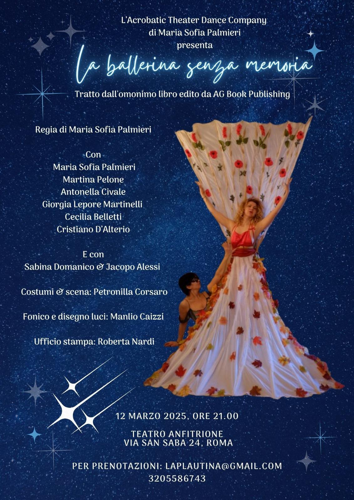 Un evento imperdibile sta per animare la scena teatrale capitolina: La ballerina senza memoria, l’adattamento dell’omonimo libro edito da AG Book Publishing, scritto dalla poliedrica Maria Sofia Palmieri, debutterà il 12 marzo sotto la sua stessa regia al Teatro Anfitrione (via San Saba, 24).