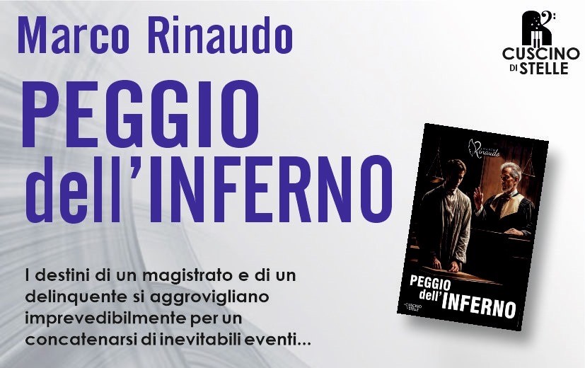“Peggio dell’Inferno”, terzo libro edito da Il Cuscino di Stelle, raccoglie i destini di un magistrato e di un delinquente che si aggrovigliano in un concatenarsi di inevitabili eventi. Sembra un confronto improponibile tra due mondi opposti ma, in realtà i protagonisti sono più simili di quanto si pensi.