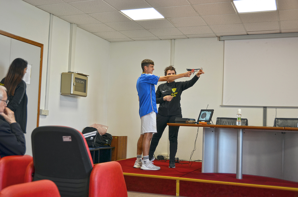 I 18 studenti del Liceo, accompagnati da tre professori, sono stati ospiti del Centro Sportivo per l'intera giornata dove hanno avuto la possibilità di vivere un’esperienza particolare, un’autentica full immersion nel mondo Fiamme Gialle, nel corso della quale hanno potuto assistere a dimostrazioni di varie discipline e cimentarsi in alcune di esse tra cui atletica, judo e tiro a segno con il simulatore, trascorrendo ore intense e piacevoli, con attività che potessero stimolare la loro curiosità e il loro interesse di giovani sportivi.