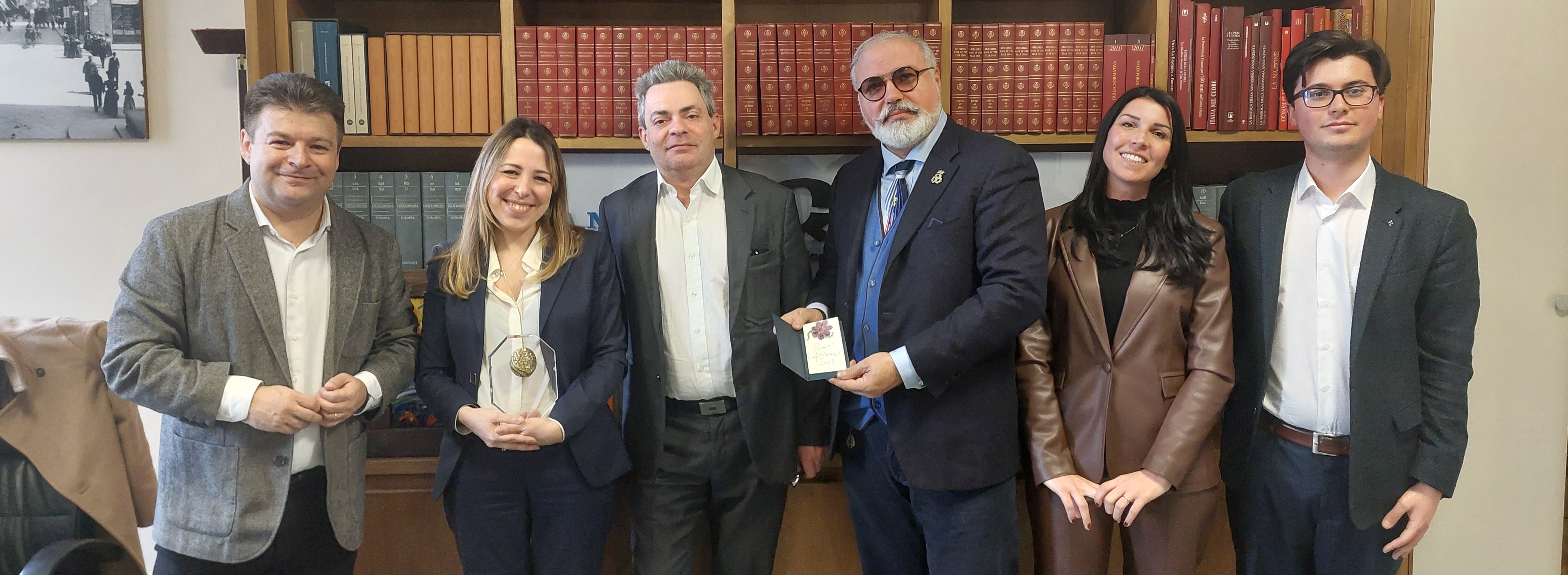 Il Premio le è stato consegnato da una delegazione composta dal presidente Alessandro Sorani, dal segretario generale Jacopo Ferretti, da Costanza Masini, presidente di Donne Impresa Confartigianato Firenze, e da Paolo Penko che ha realizzato il premio che ritrae la donna proiettata verso il futuro, grazie anche alla particolarissima lavorazione “il penkato”, che fa risplendere il metallo prezioso di luce propria.