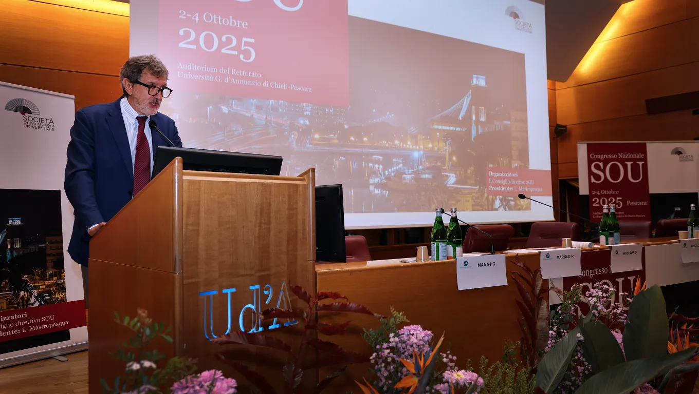 Il presidente della Regione Abruzzo, Marco Marsilio, è intervenuto, questa mattina, all’Università “G. d’Annunzio” di Chieti, in occasione del congresso annuale della Società Oftalmologica Universitaria (SOU), sottolineando il ruolo strategico della clinica oculistica teatina e della rete costruita con la comunità scientifica nazionale e internazionale.