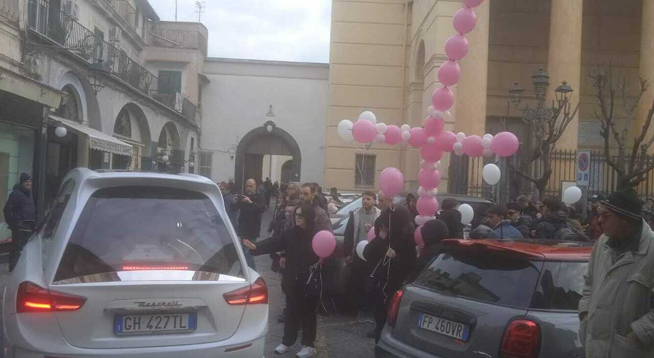 Decine di palloncini sono stati fatti volare all'uscita del feretro della piccola.