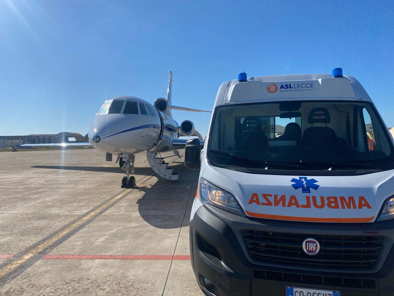 Giunto sull'aeroporto di Lecce-Galatina, l’aereo ha imbarcato il piccolo paziente, precedentemente ricoverato presso l’Ospedale pugliese “Vito Fazzi”, insieme ad un’equipe medica e al suo papà.