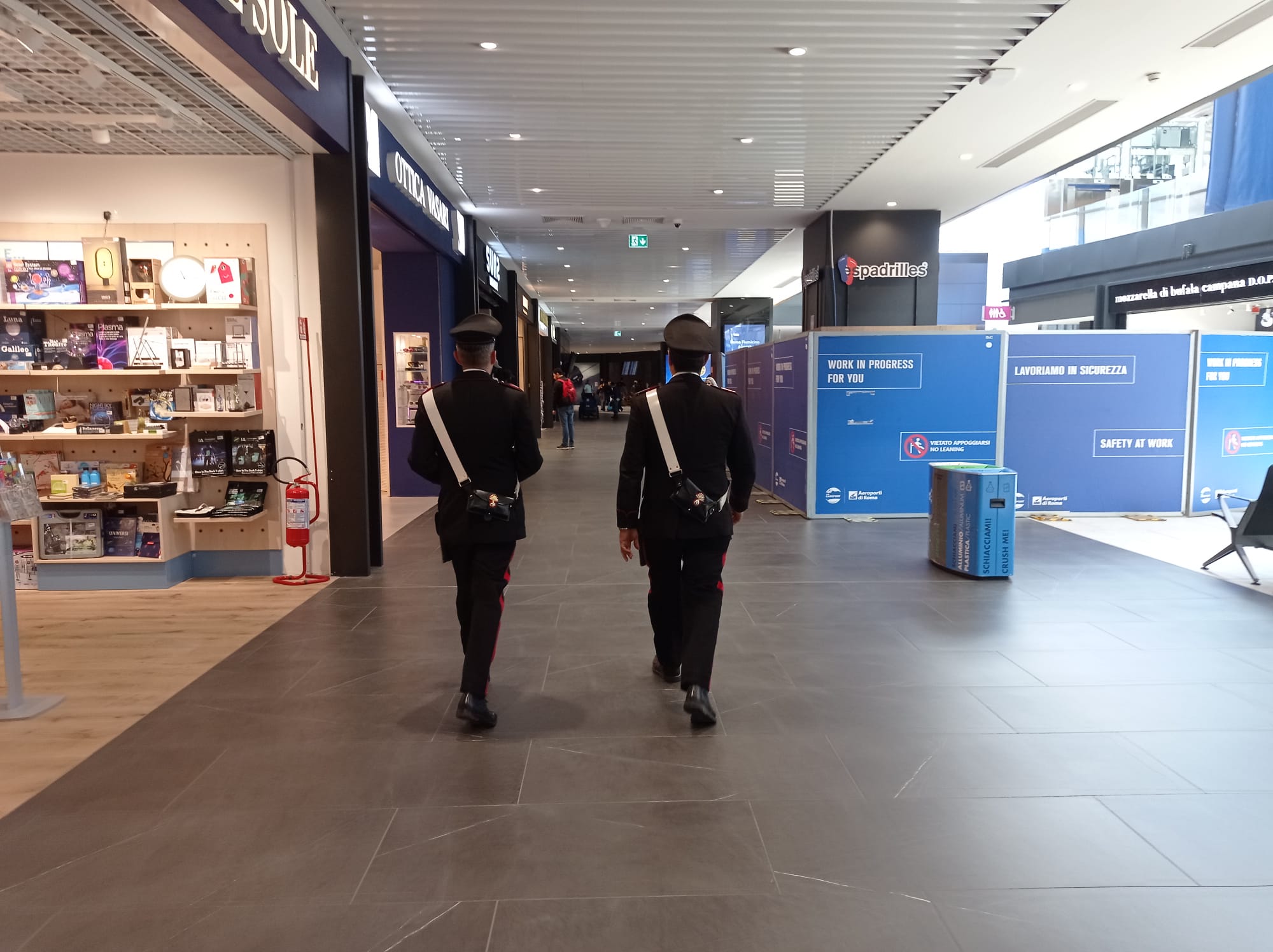 I Carabinieri della Compagnia Aeroporti di Roma hanno identificato e sanzionato una persona intenta a procacciare clienti tra i passeggeri presso lo scalo aeroportuale “Leonardo Da Vinci”, nel corso di un mirato servizio finalizzato a contrastare l’esercizio abusivo dell’attività di trasporto pubblico non di linea, e hanno anche denunciato 5 persone tra cui quattro viaggiatori per tentato furto.
