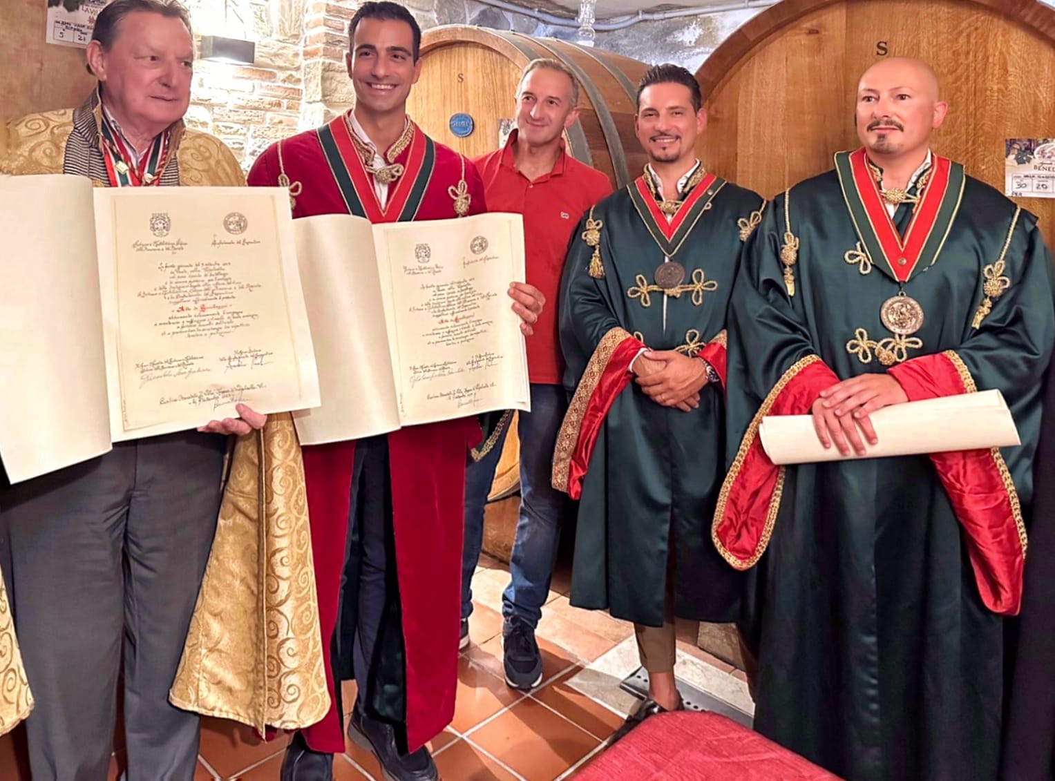 La firma delle pergamene, da parte del Gran Cordone Alessandro Silvestrini e del Gran Maestro Arnaldo Semprebon, è avvenuta sabato 9 settembre nella suggestiva cornice della Cantina Benedetti ‘La Villa’ a Negrar di Valpollicella nel cuore della terra di produzione dell’Amarone e del Recioto.