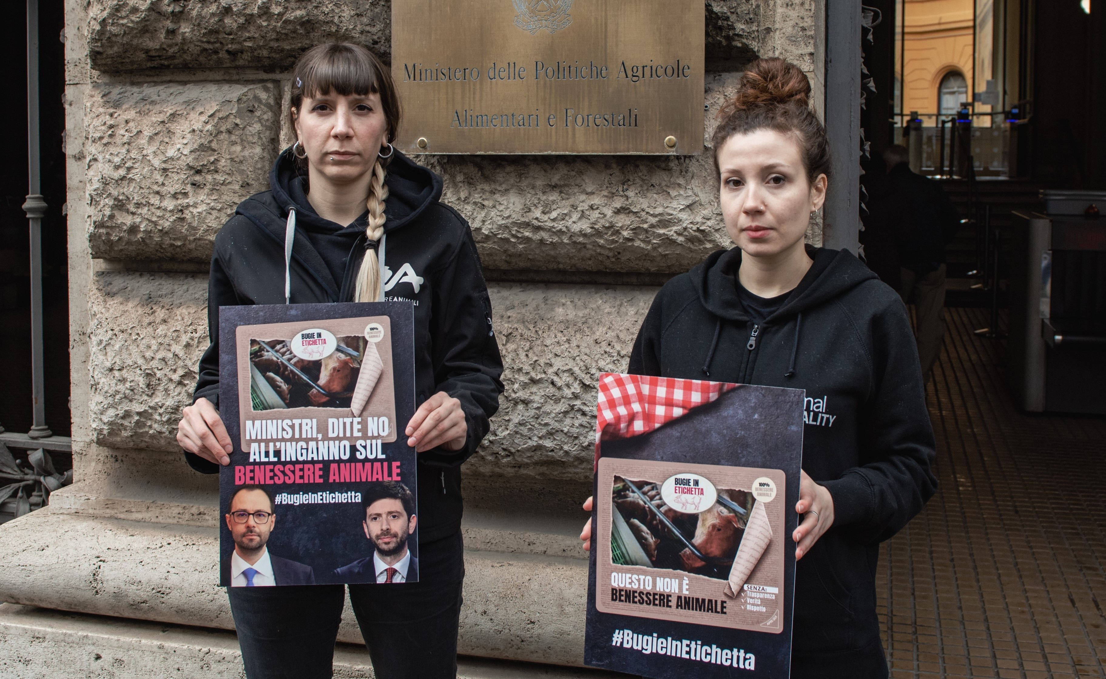 La grande partecipazione sui social e davanti ai Ministeri di giovani attivisti e società civile dimostra l’urgenza di intervenire su un progetto di etichettatura che i cittadini non condividono, in quanto privo dei criteri necessari a garantire un maggiore rispetto degli animali allevati a scopo alimentare e della necessaria trasparenza e chiarezza nei confronti dei consumatori. La proposta portata avanti dai Ministeri delle Politiche Agricole e della Salute con Accredia prevede infatti la certificazione con il claim in etichetta “benessere animale” anche per prodotti provenienti da animali allevati secondo standard al ribasso, tipici delle forme di allevamento intensivo. Mai come in questo momento, in cui la grande richiesta di cereali da parte degli allevamenti intensivi rischia di compromettere ulteriormente il sistema agroalimentare europeo già minacciato dalla guerra e dai cambiamenti climatici, servirebbero misure che spingano gli allevatori ad abbandonare i sistemi intensivi, per scegliere metodi più rispettosi degli animali e dell’ambiente.