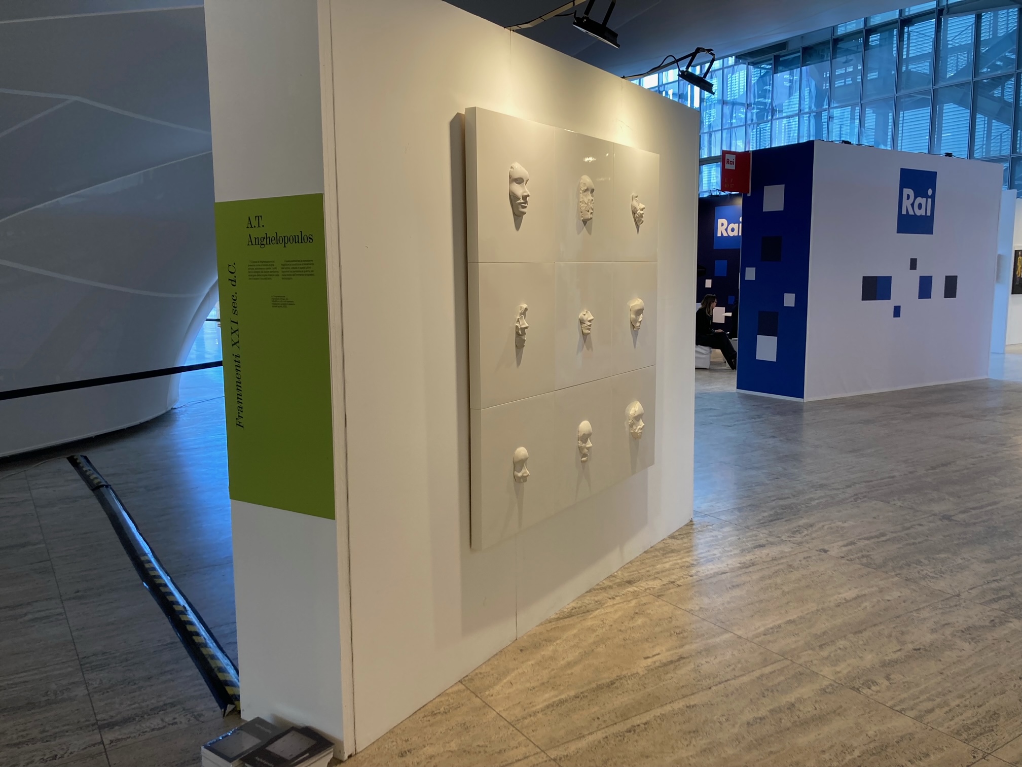 Anghelopoulos, l’artista italiano che vive e lavora a Roma (classe 1963) ha partecipato con l’opera Frammenti – XXI sec. d.C. alla terza edizione “Roma Arte in Nuvola”, svoltasi dal 24 al 26 novembre 2023 nel Centro Congressi “La Nuvola”, nel moderno quartiere Eur di Roma.