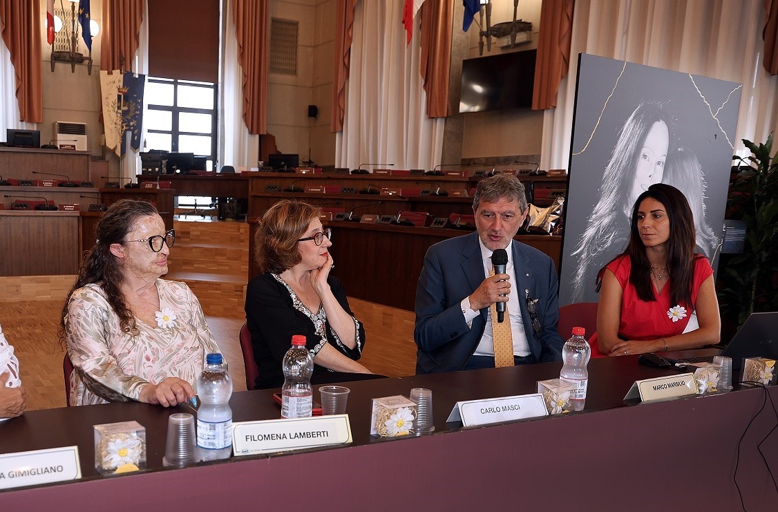 Tra gli altri intervenuti Francesca Di Tonno (Coordinatrice Le Imprenditrici di Confindustria Abruzzo Medio Adriatico), Anna Rita Mantini (Procuratore Aggiunto di Pescara e Coordinatrice del GAV – Gruppo Antiviolenza Tribunale), Filomena Lamberti, prima donna sopravvissuta a un’aggressione con acido in Italia, che ha portato la sua testimonianza reale e autentica che, passando dal dramma vissuto, l’ha accompagnata alla sua rinascita. Donatella Gimigliano, Presidente Associazione Consorzio Umanitas, ideatrice e promotrice progetto che ha spiegato: "Dieci anni fa ero una paziente oncologica con una storia familiare segnata dal tumore al seno. Sapevo cosa significava portare sulla pelle e nell’anima segni indelebili. Quelle cicatrici le ho viste anche nelle donne sopravvissute alla violenza, ferite diverse ma ugualmente profonde. Da quel dolore è nato Women for Women against Violence, un progetto che racconta storie di vita, di resilienza e rinascita, perché ogni cicatrice può trasformarsi in un simbolo di forza. Questa mostra è anche la celebrazione di ogni battaglia vinta, di ogni donna aiutata. Perché dietro ogni ferita c’è una storia che merita di essere raccontata. E soprattutto, di essere ascoltata".