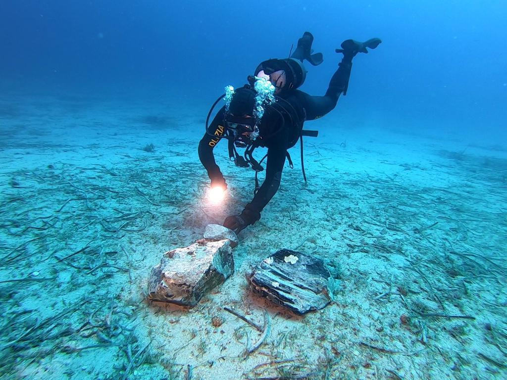Il Soprintendente Mariano Nuzzo, insieme al funzionario archeologo responsabile della tutela, dott. Luca di Franco, e ai referenti per l’archeologia subacquea, dott.ssa Simona Formola e l’assistente tecnico Carlo Leggieri, coadiuvati sul campo dalla Polizia Nucleo Sommozzatori di Napoli e i Carabinieri del TPC, hanno provveduto al preciso posizionamento dei reperti, constatando una dispersione di evidenze su un’area ben maggiore di quanto non si pensasse, ad una profondità compresa tra i 30 e oltre i 40 mt e al recupero di quello che doveva essere parte di una carico di una nave di epoca neolitica.