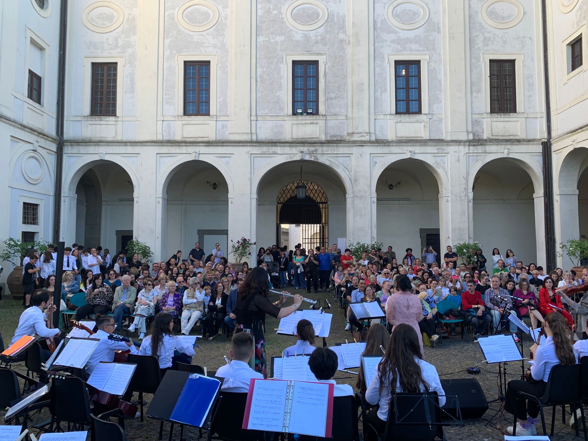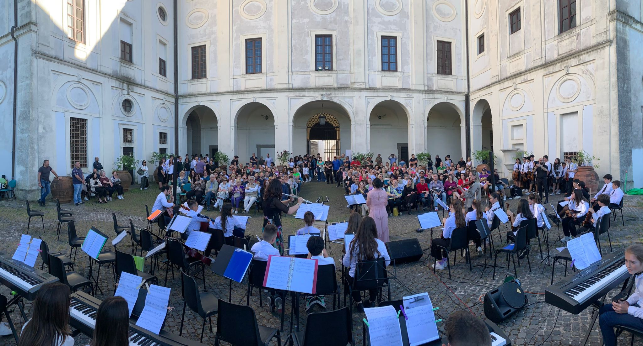 Il cortile di Palazzo Chigi ad Ariccia ha fatto da cornice alla cerimonia di chiusura del percorso musicale dell’anno scolastico dell’Istituto Vito Volterra.