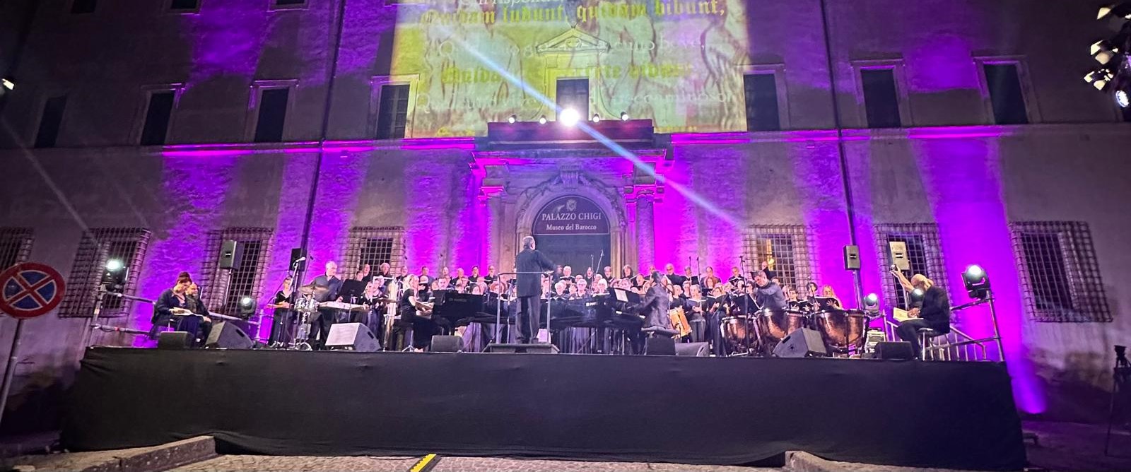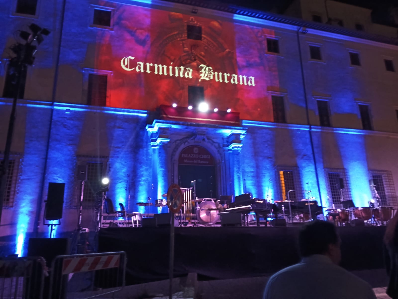 Il pubblico ha potuto poi assistere a uno degli appuntamenti più attesi della Festa Patronale di Santa Apollonia: l’esecuzione dei celebri “Carmina Burana” in Piazza di Corte. Lo spettacolo, curato nei minimi dettagli sotto il profilo musicale e visivo, ha incantato la piazza gremita. Le luci, le didascalie, la precisione dell’allestimento hanno reso l’evento un vero momento di teatro collettivo all’aperto.