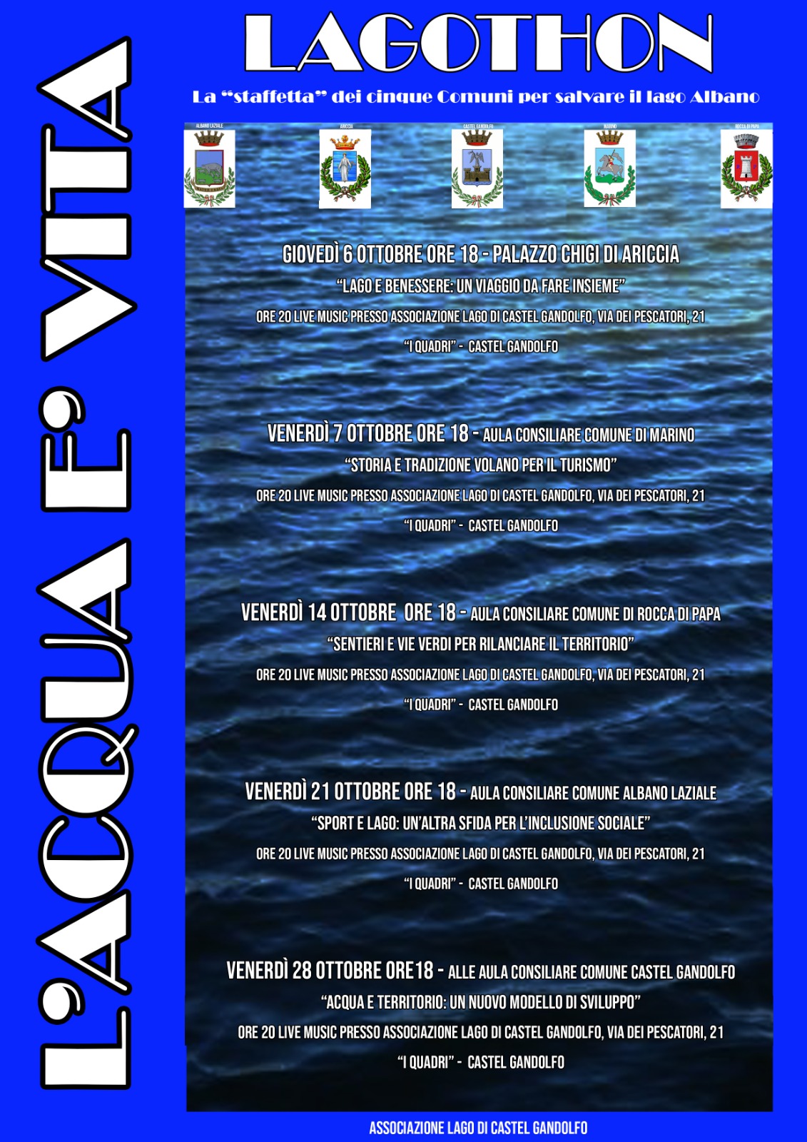L’iniziativa promossa dall’Associazione Lago di Castel Gandolfo è la prima di cinque appuntamenti che vedono impegnati i comuni di Ariccia, Marino,Rocca di Papa, Albano Laziale e Castel Gandolfo in una campagna di sensibilizzazione a difesa del Lago Albano.