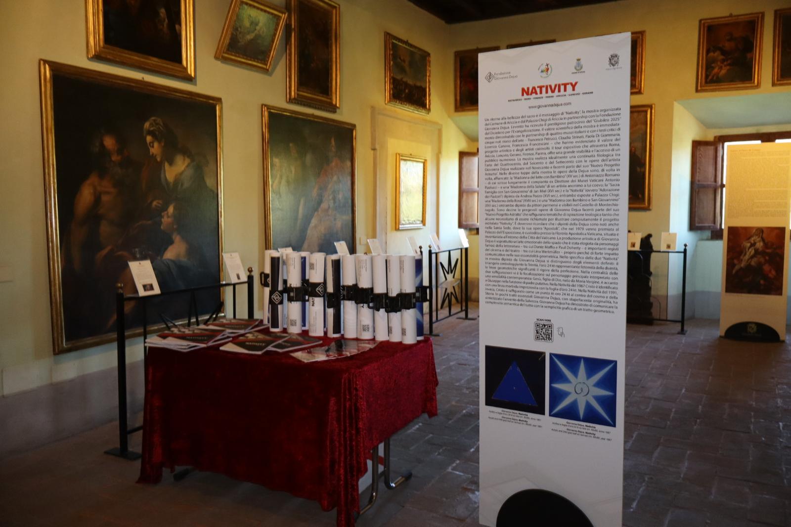 Tra le opere esposte, due "Natività" del 1987 e del 1991 dell'artista Giovanna Dejua, appartenenti al suo "Nuovo Progetto Astratto", sono state affiancate alla “Sacra Famiglia con San Giovannino” di Jan Miel (XVII secolo) e alla “Adorazione dei pastori“ di Viviano Codazzi e Filippo Lauri (XVII secolo).