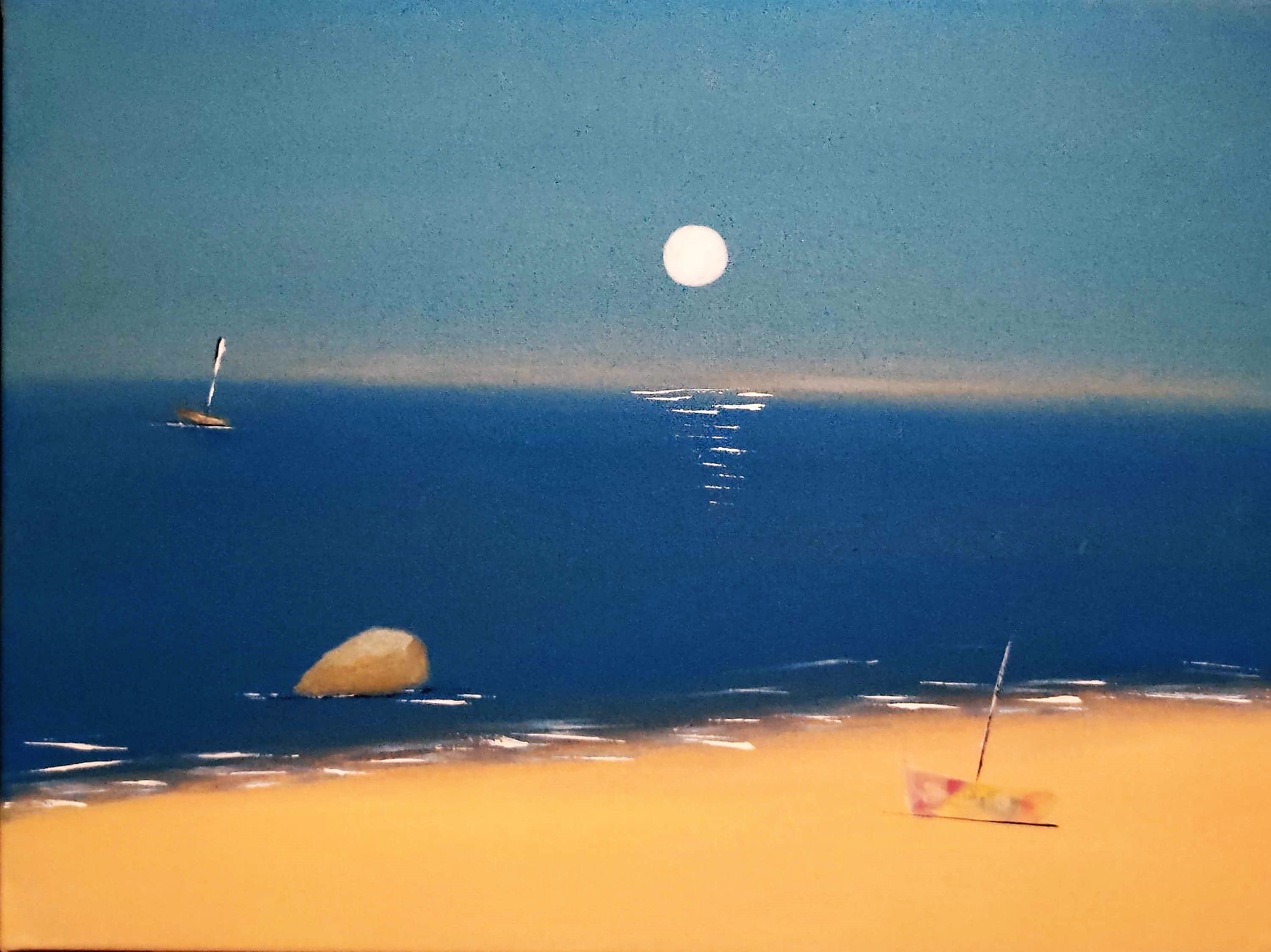 Scrive Scavone: “Il racconto pittorico di Diego Veneziani si sviluppa con scelte orientate dai propri ricordi, a cui si accompagna un sentimento di dolce nostalgia che trapela dalla rappresentazione di imbarcazioni isolate, le quali si stagliano su di un mare sconfinato, quasi come fossero in attesa del ritorno di chi, con tanta delicatezza e premura, le ha dipinte. Ed ecco che alcune guardano proprio verso la costa - ritratte singole piuttosto che a coppie oppure ancora a gruppi di due, tre ed oltre - aspettando forse che un volto faccia capolino e che una figura appaia all’orizzonte. Profondo e spirituale è il legame di Veneziani con il suo mare, rievocazione di emozioni rimaste impresse nel cuore e nell’animo di colui che, prima ancora di essere un pittore, è un uomo pervaso da un amore viscerale per la Natura e per la sensazione di libertà e proiezione verso l’infinito che solo il mare è in grado di regalare”.