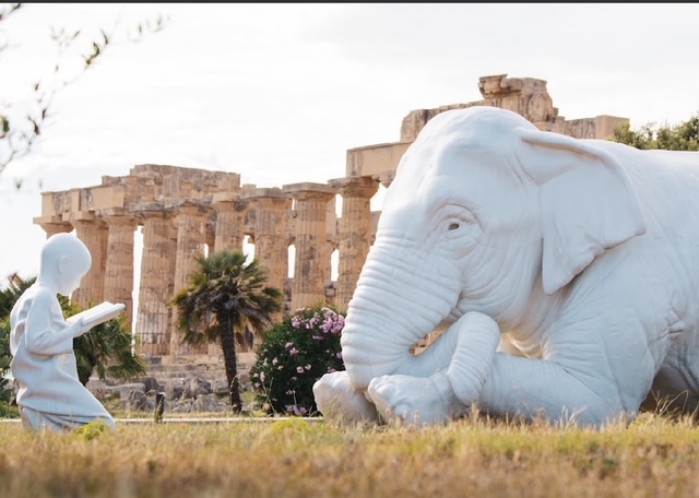 Quindici le sculture monumentali esposte al Parco Archeologico, tra cui rinoceronti sovradimensionati, gorilla, struzzi pop e coleotteri che trasformano uno dei siti archeologici più straordinari del Mediterraneo in una piattaforma di dialogo tra storia e consapevolezza.