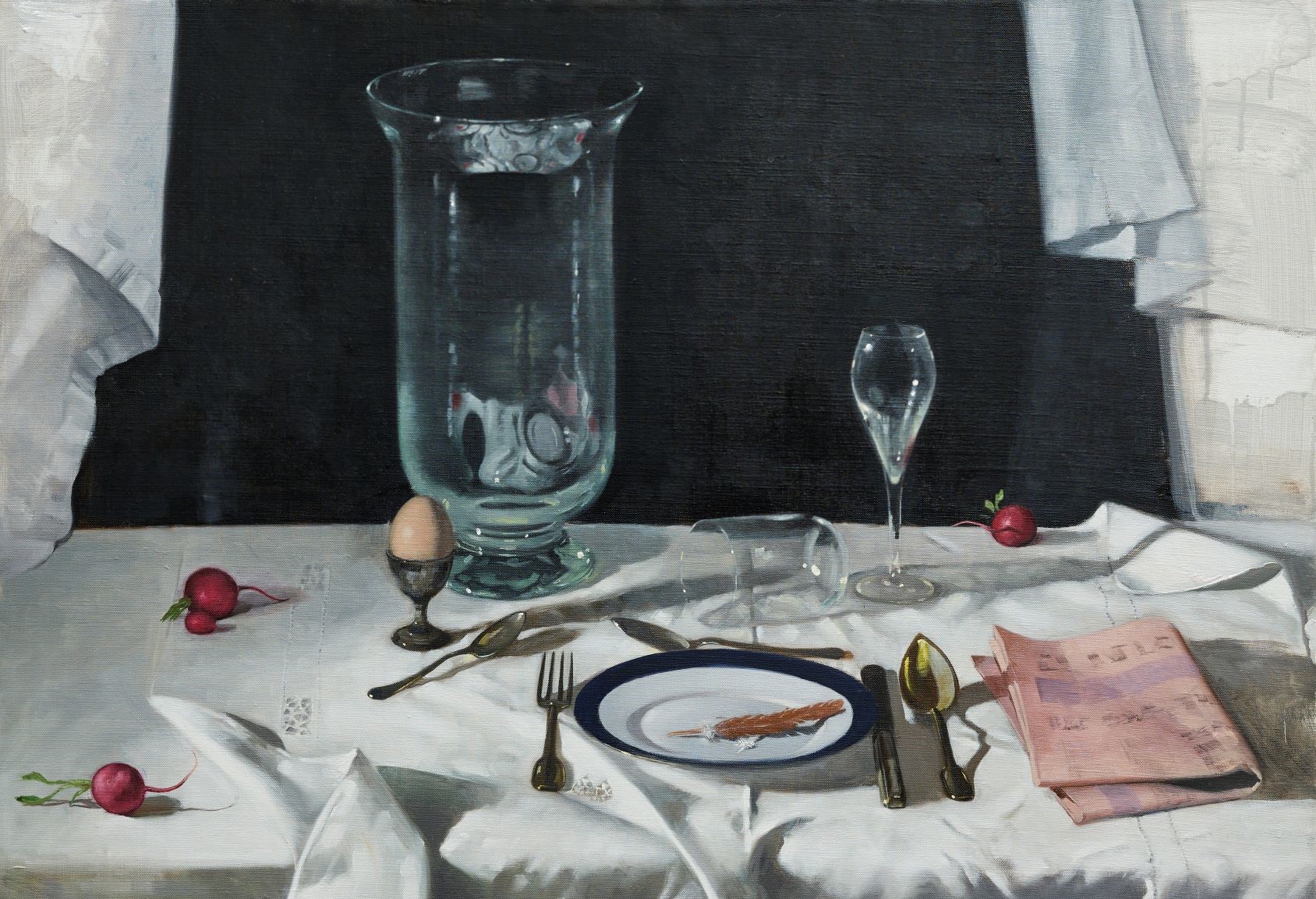 L’artista confida: “Parallelamente alla luce, i colori e la musica mi accompagnano sempre mentre lavoro. I colori sono visibili, mentre la musica spero sia altrettanto percettibile nelle composizioni e nelle atmosfere dei quadri. Adesso che ci penso, certe mie composizioni creano dello spazio tra le figure come fossero note su un pentagramma. Pausa, oggetto, pausa, sono per me le note appoggiate alla tela”.