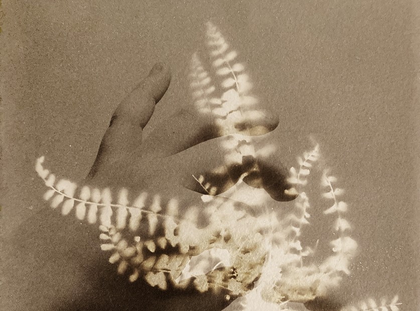 Da questa osservazione della natura e della sua imperfezione, La Calò insieme ai partecipanti del laboratorio hanno trasformato le erbe spontanee (le cosiddette “erbacce”) in impronte su carta fotografica grazie alla tecnica del fotogramma, la stessa tecnica usata da molti artisti delle avanguardie del ‘900 come Man Ray. Alessandra Calò ha poi dato vita a sovrapposizioni di immagini e simboli che rimandano al concetto di fragilità e umanità, unendo alle forme delle erbe quelle delle mani stesse dei partecipanti. Un nuovo e innovativo modo di concepire l’immagine che racconta il gesto di cura evocato dai protagonisti delle fotografie fino ad arrivare alla simbiosi e al parallelismo con la natura e l’umanità raffigurata.