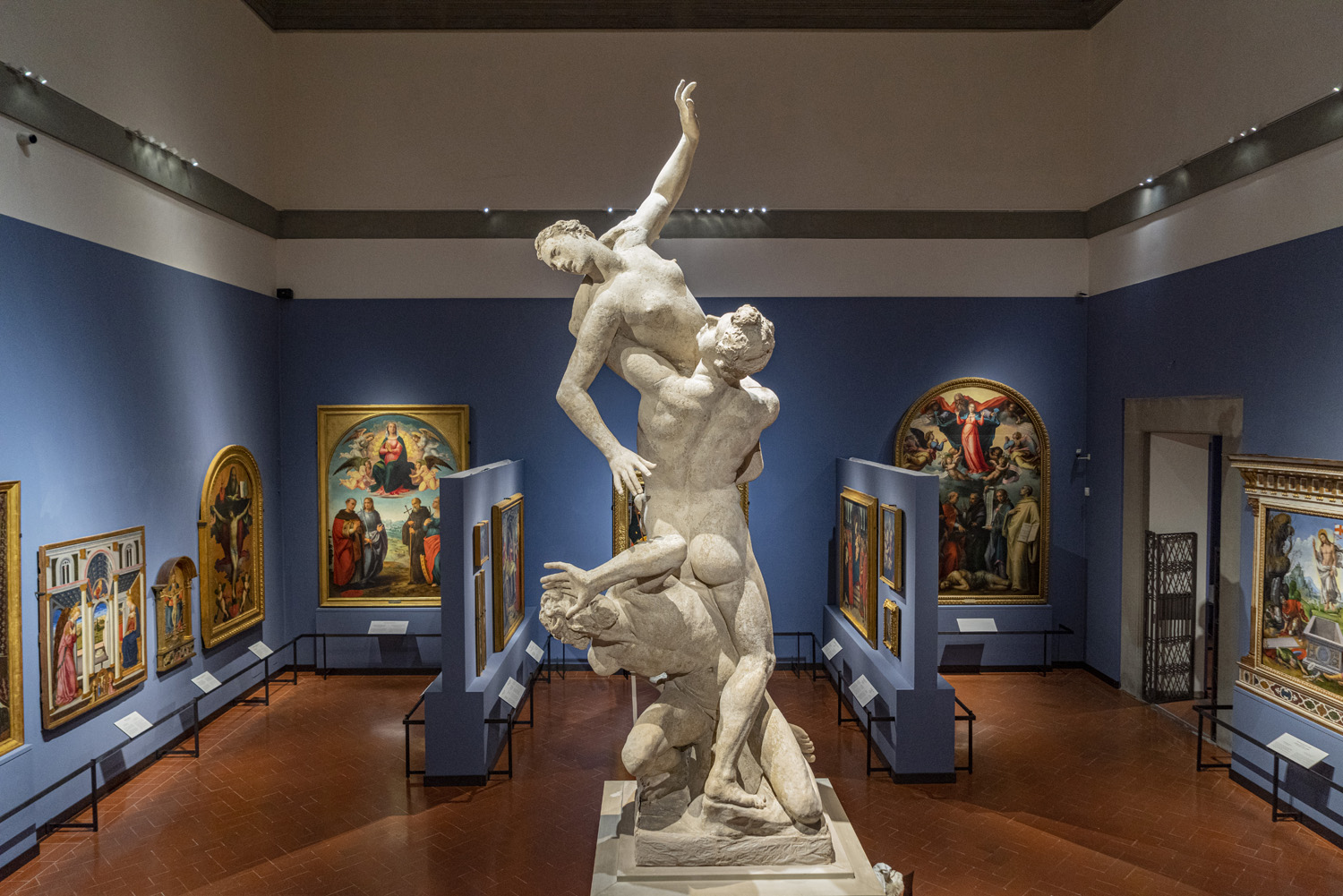 Nella Sala del Colosso, con al centro l’imponente “Ratto delle Sabine”, scultura in terra cruda del Giambologna, è possibile ammirare i capolavori della pittura fiorentina del Quattrocento e del primo Cinquecento. Sempre al piano terra troviamo la sezione dedicata al Duecento e al Trecento e il dipartimento degli Strumenti Musicali, un vero gioiello che raccoglie rari pezzi unici, di cui non tutti sono a conoscenza.