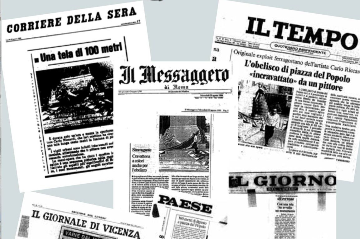 Sono passati trentanove anni da quel caldo sabato d’estate del 1986, quando Carlo Riccardi, artista, fotografo e pittore, avvolse “incravattando” l’obelisco diPiazza del Popolo con una delle sue celebri MaxiTele.