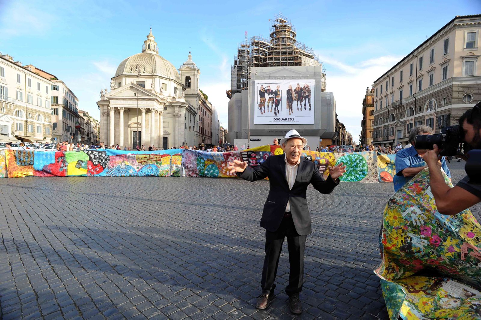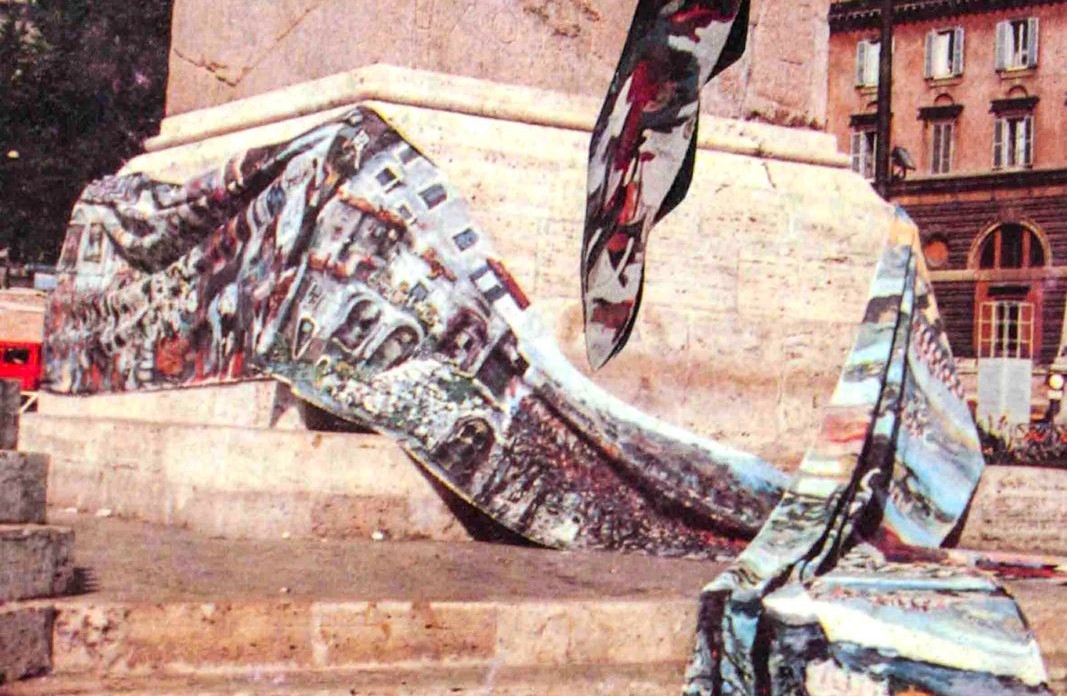 Nel 1987, Roma accolse altre sue imponenti installazioni: da Castel Sant’Angelo a Piazza Navona, da San Pietro al Foro Italico, fino alla spiaggia di Ostia.
